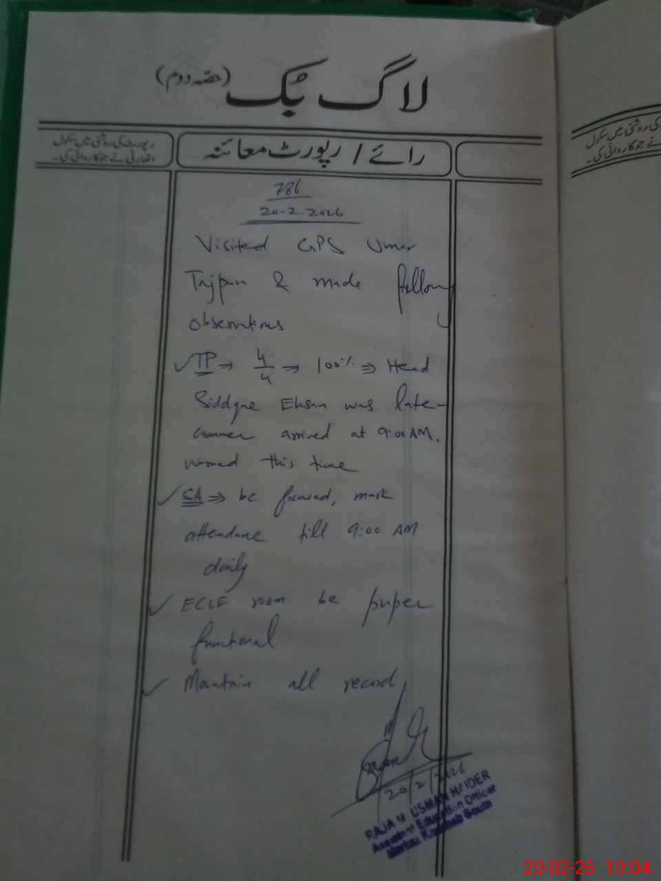 | Attendance Register | Head Teacher | MEA with School | Visit Proof |