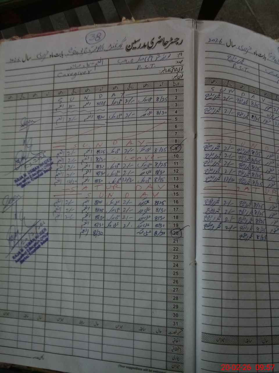 | CNIC | Full Name | Designation | R/C | Absence During Last Calender Month |