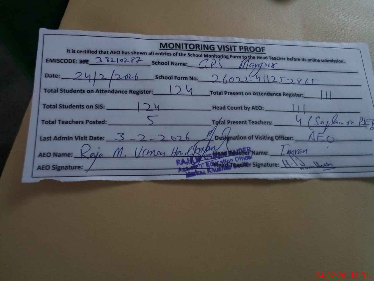 | EMIS Code: 38210287 | Name of School: GPS MANGOOR | |||