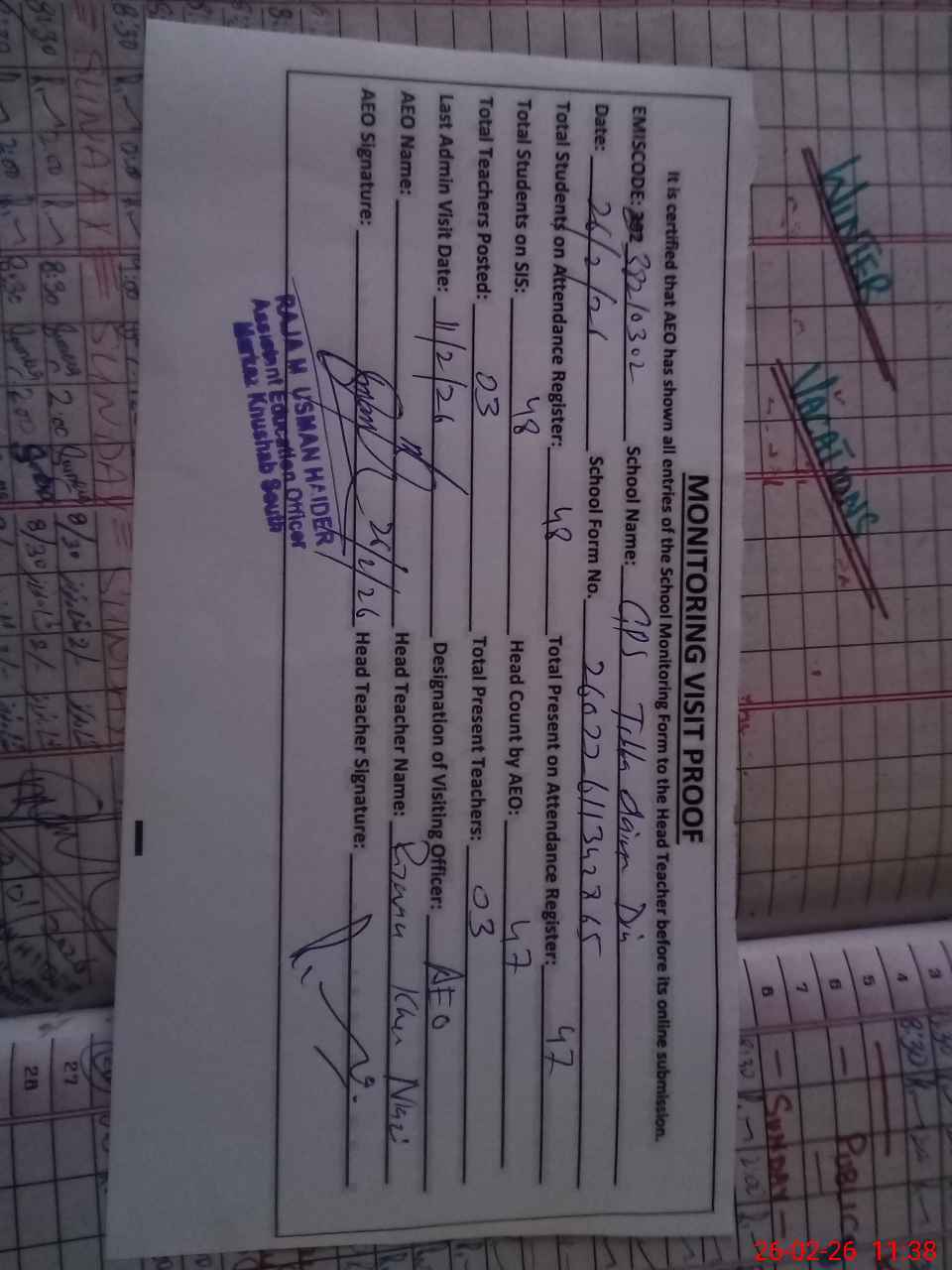 | EMIS Code: 38210302 | Name of School: GPS TIBBA QAIM DIN | |||