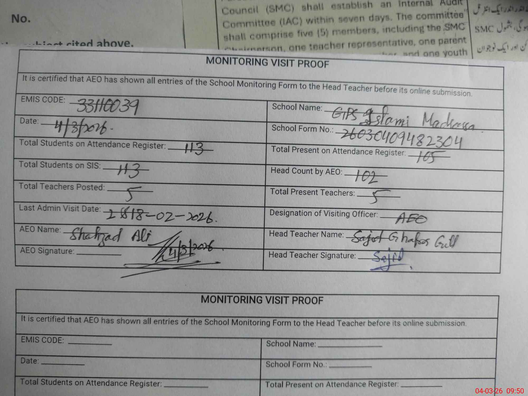 | EMIS Code: 33110039 | Name of School: GPS ISLAMI MADRISA RAJA COLONY | |||