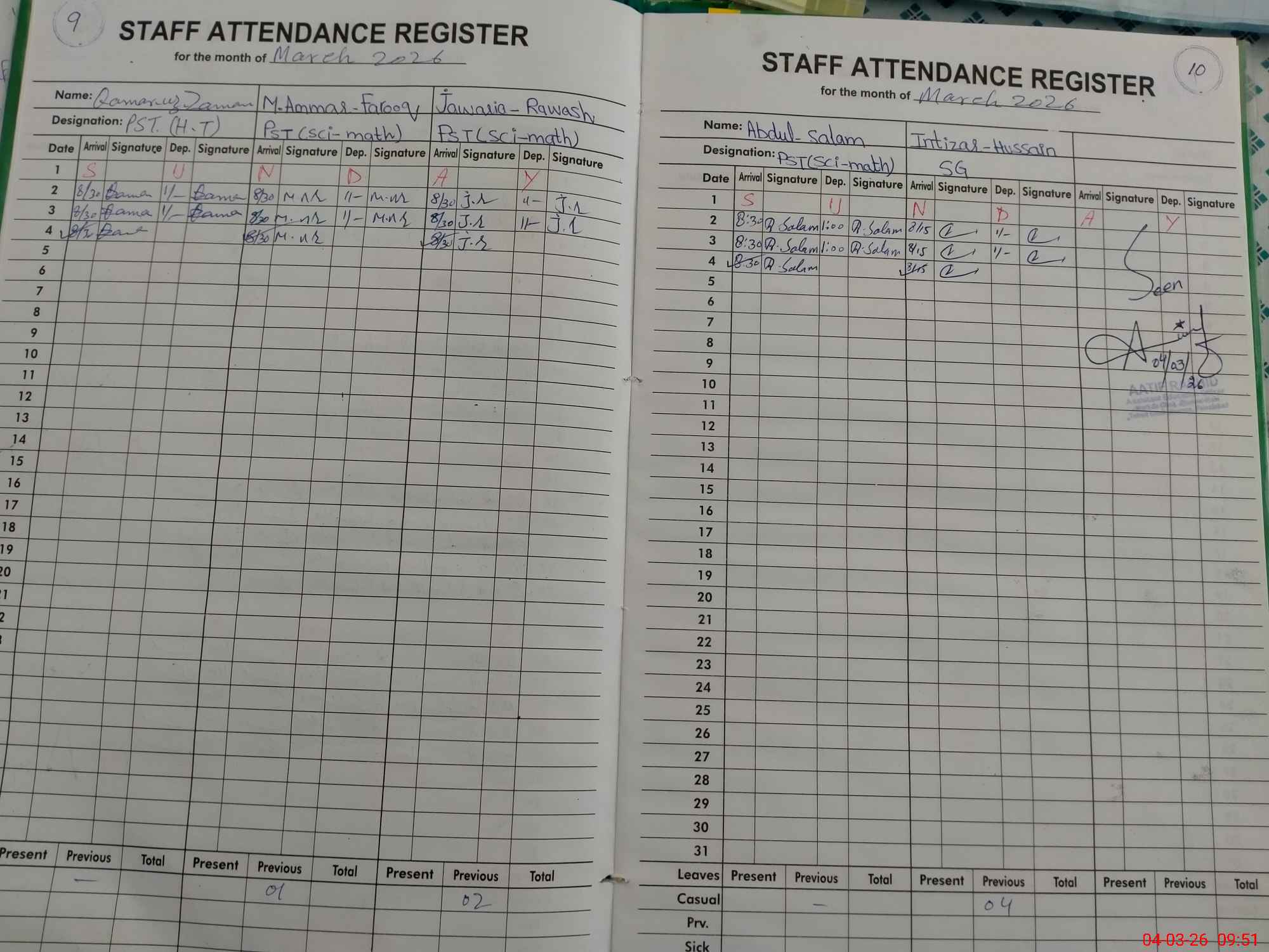 | Name: QA**** UZZA**** Designation: (School Headmaster's/Headmistress's) PST Phone/Cell Number: 03**** |