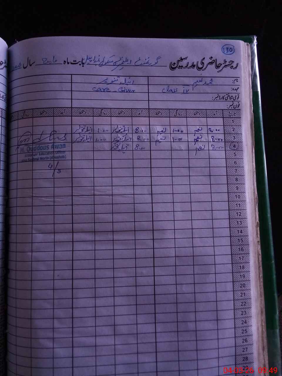 | Name: Ma**** As**** Hu**** Aw**** Designation: (School Headmaster's/Headmistress's) Pst Phone/Cell Number: 03**** |