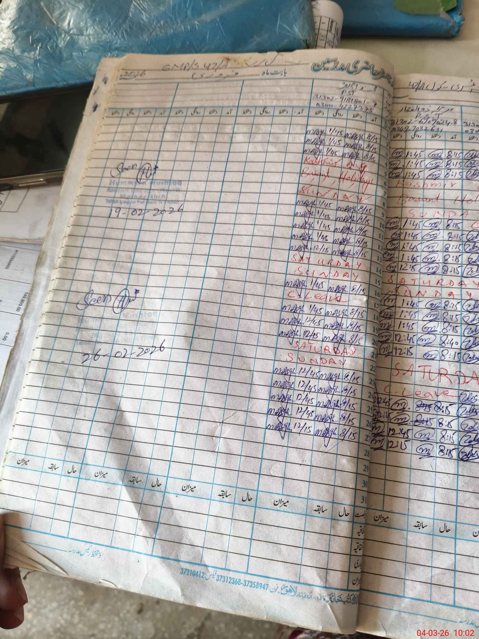 | Name: SA**** HA**** Designation: (School Headmaster's/Headmistress's) PST/PTC/JV Phone/Cell Number: 03**** |