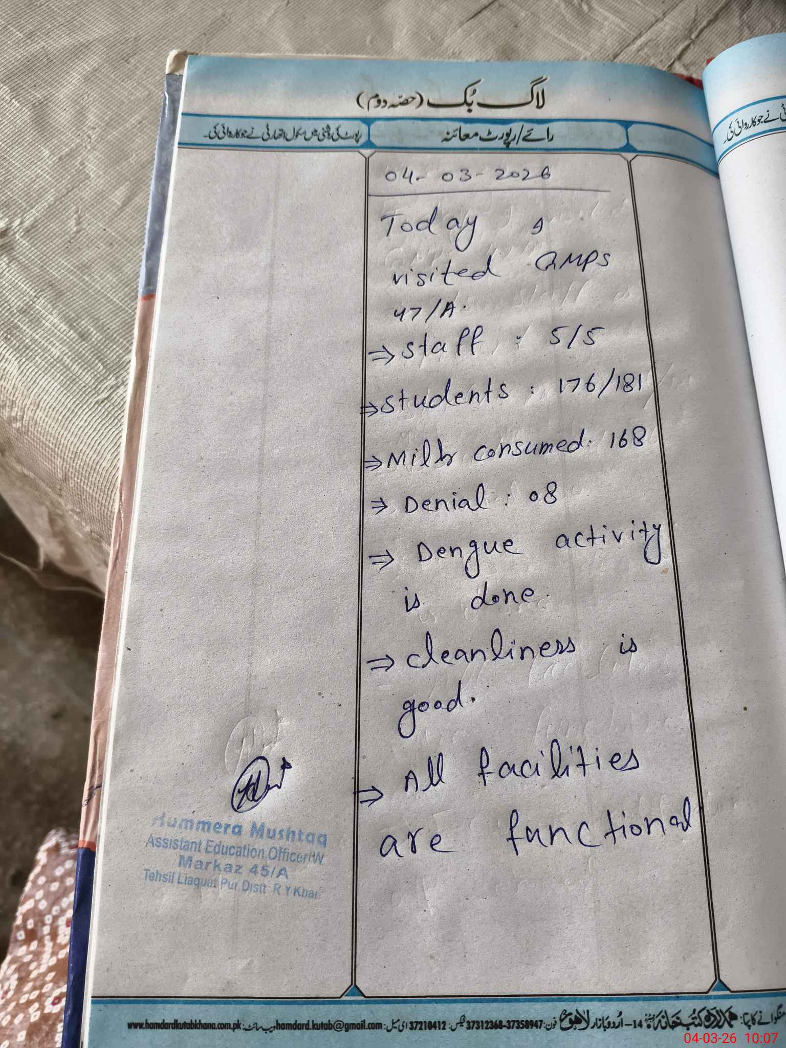 | Certified that this School was Inspected by the Undersigned MEA/DMO Today and the Information Stated Above is as Per Record. | |||||
