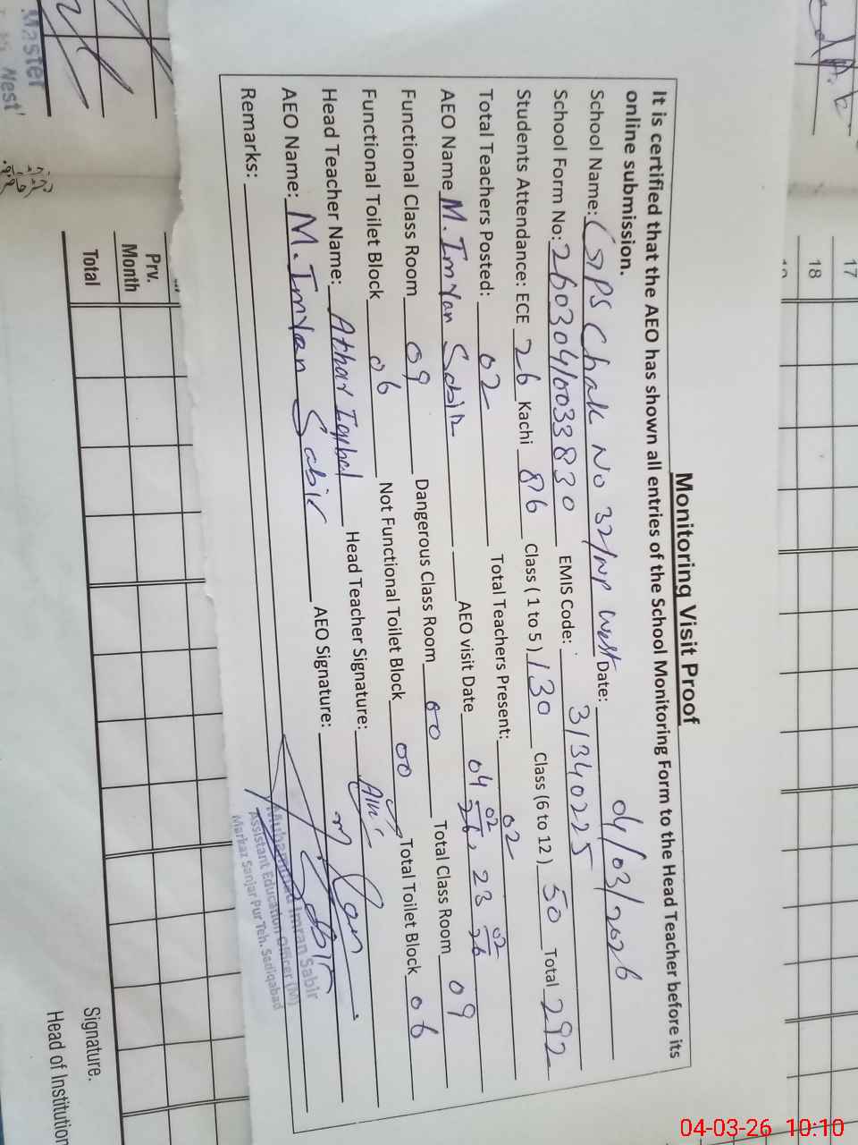 | Monitoring Date: 04-03-2026 | Start Time: 04-03-2026 09:23 AM | End Time: 04-03-2026 10:11 AM | Name of MEA: Mu**** Im**** Sa**** | |