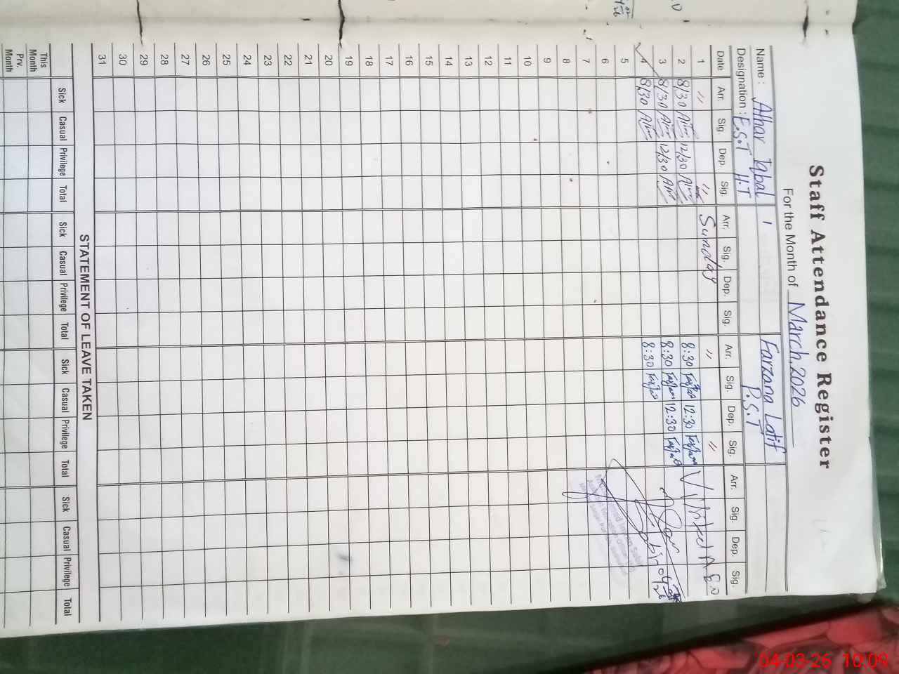 | Name: AT**** IQ**** Designation: (School Headmaster's/Headmistress's) EST Phone/Cell Number: 03**** |