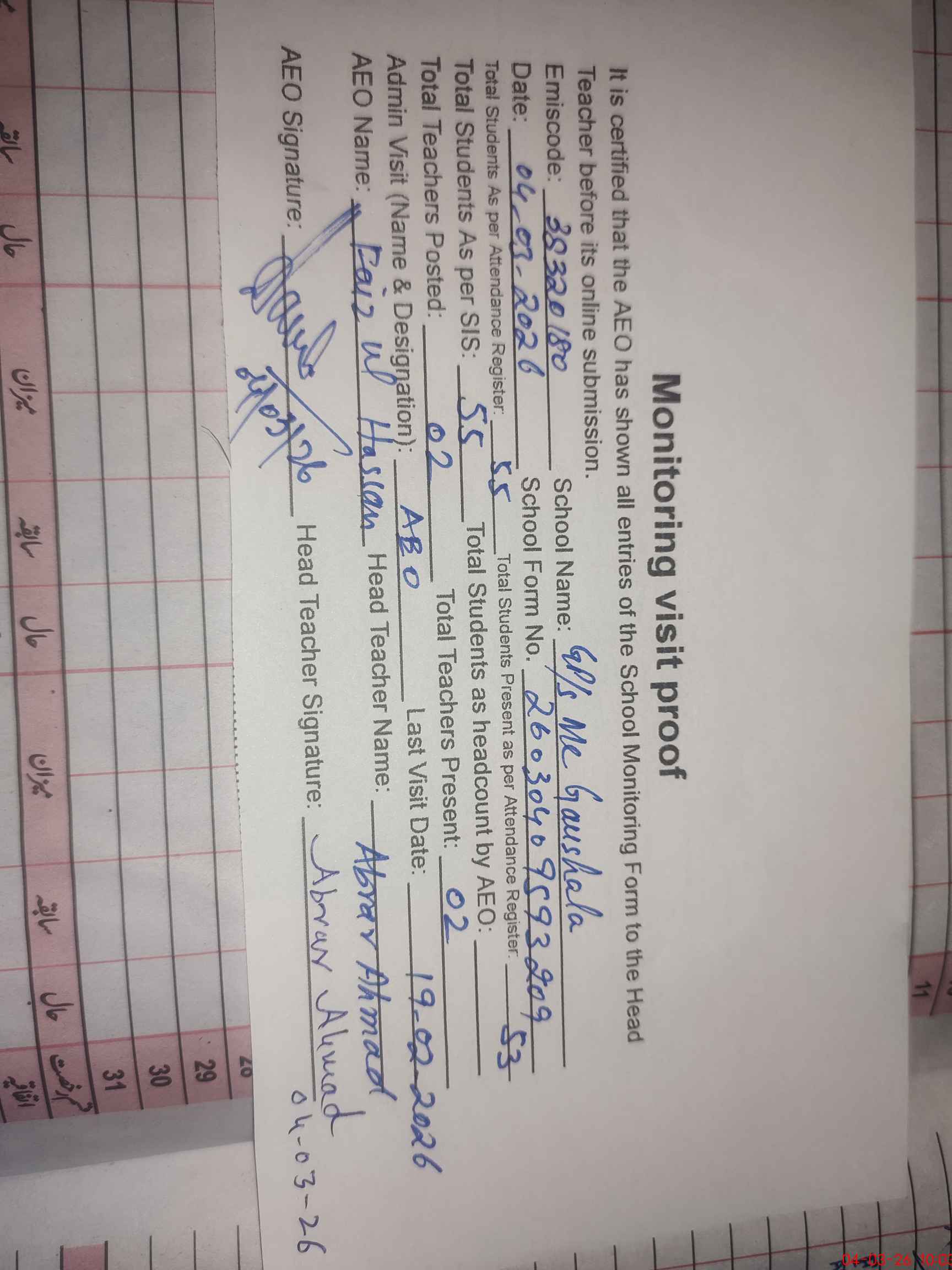 | EMIS Code: 38320180 | Name of School: GPS MC GAU SHALA | |||