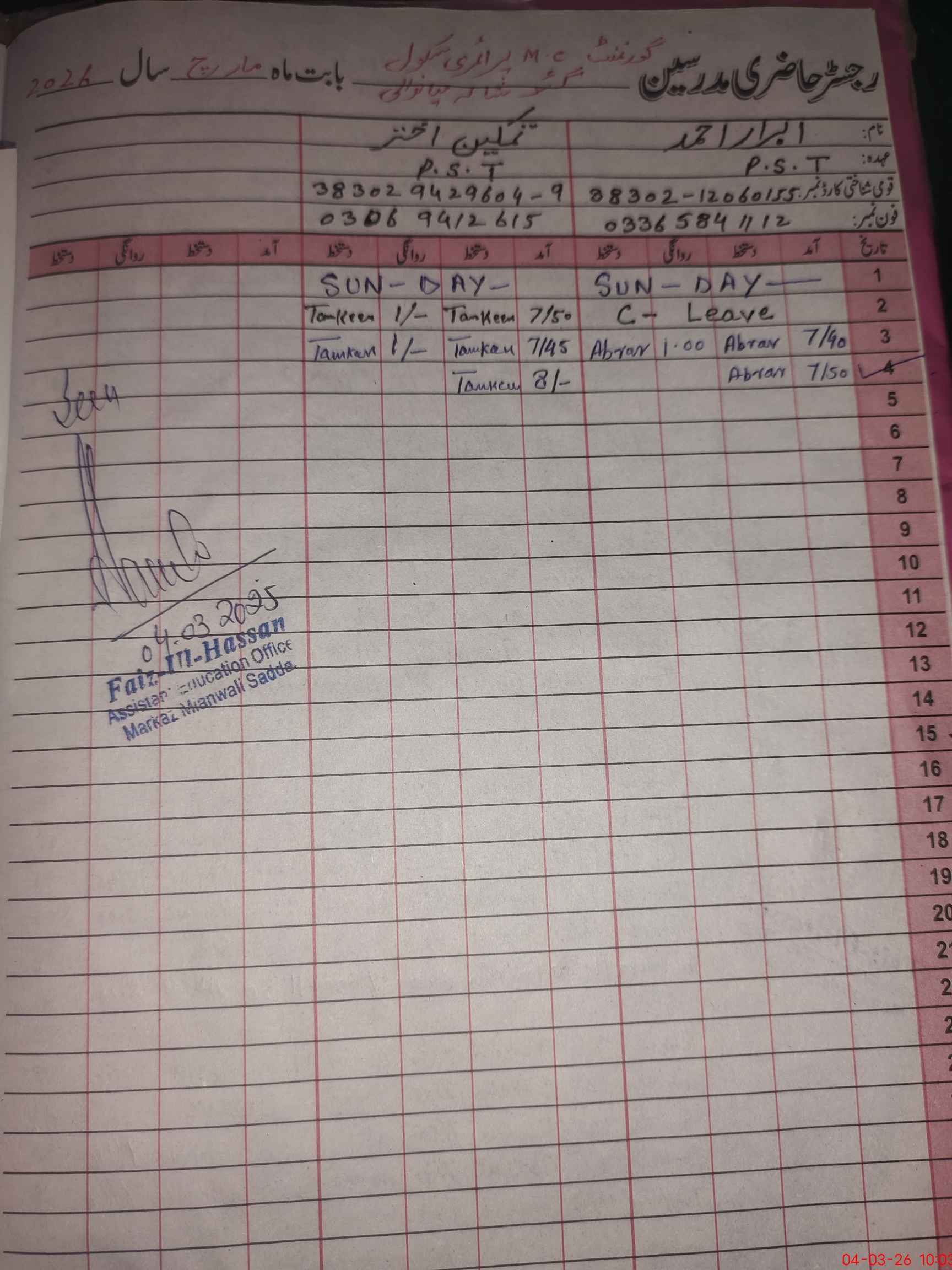 | Name: Ab**** Ah**** Designation: (School Headmaster's/Headmistress's) PST Phone/Cell Number: 03**** |