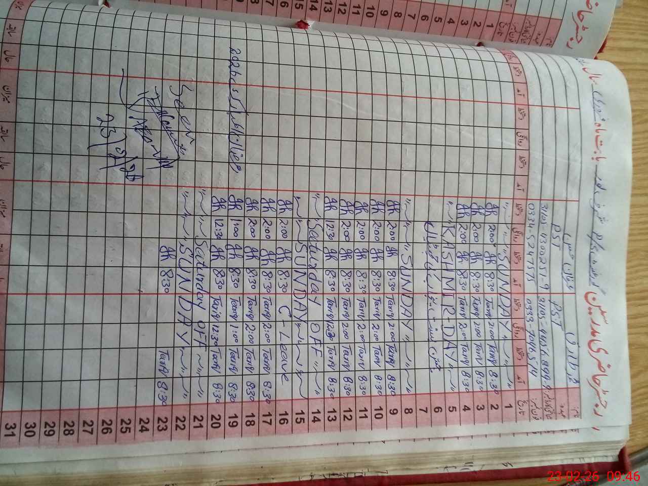| CNIC | Full Name | Designation | R/C | Absence During Last Calender Month |