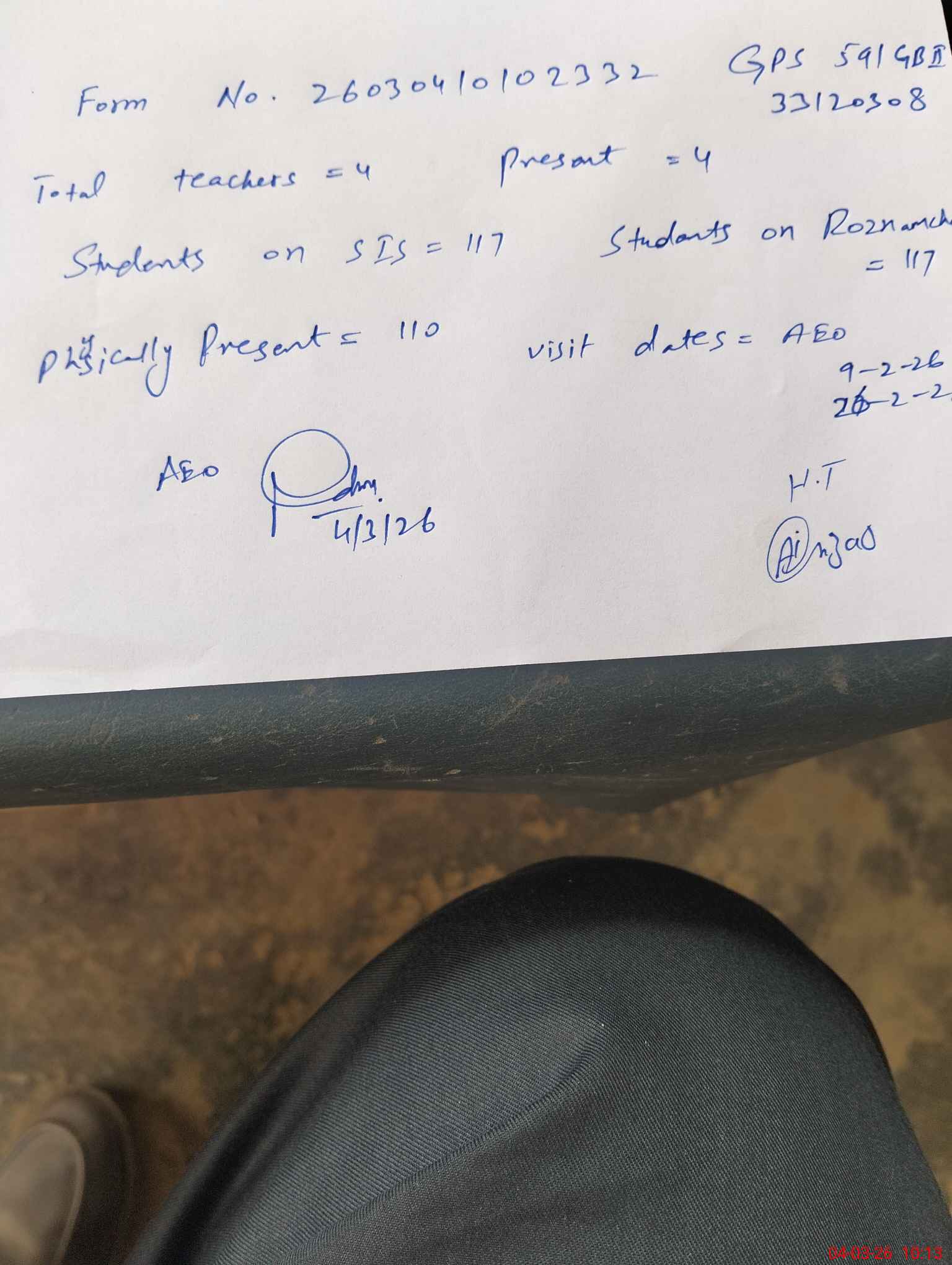 | EMIS Code: 33120308 | Name of School: GPS CHAK 591 GB II | |||