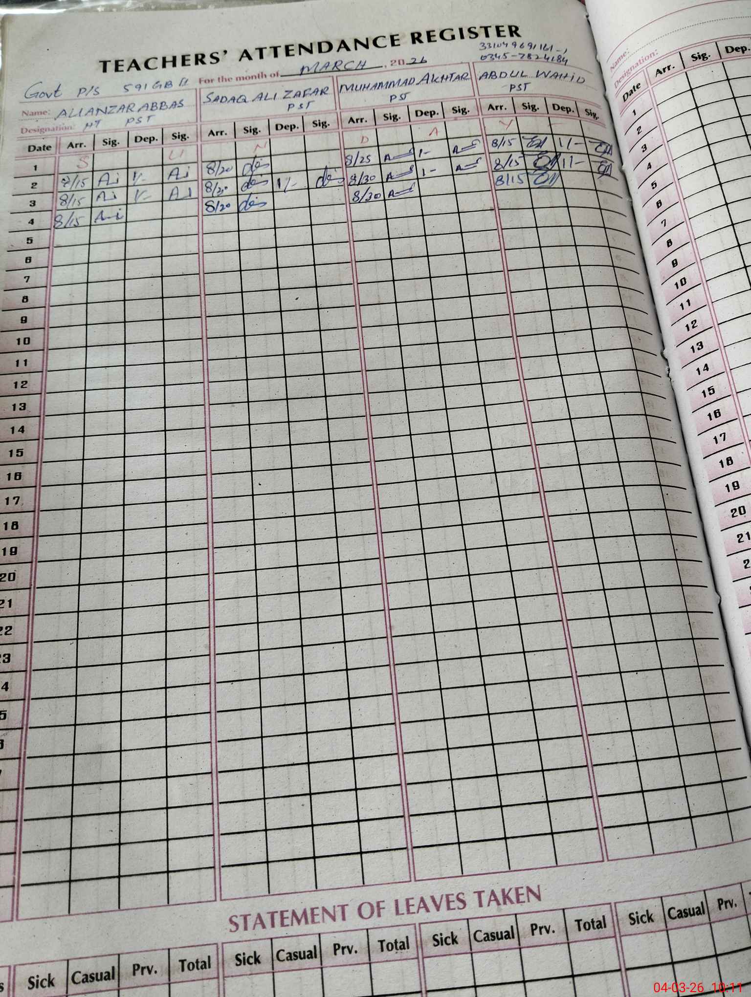 | Name: AL**** An**** AB**** Designation: (School Headmaster's/Headmistress's) PST Phone/Cell Number: 03**** |