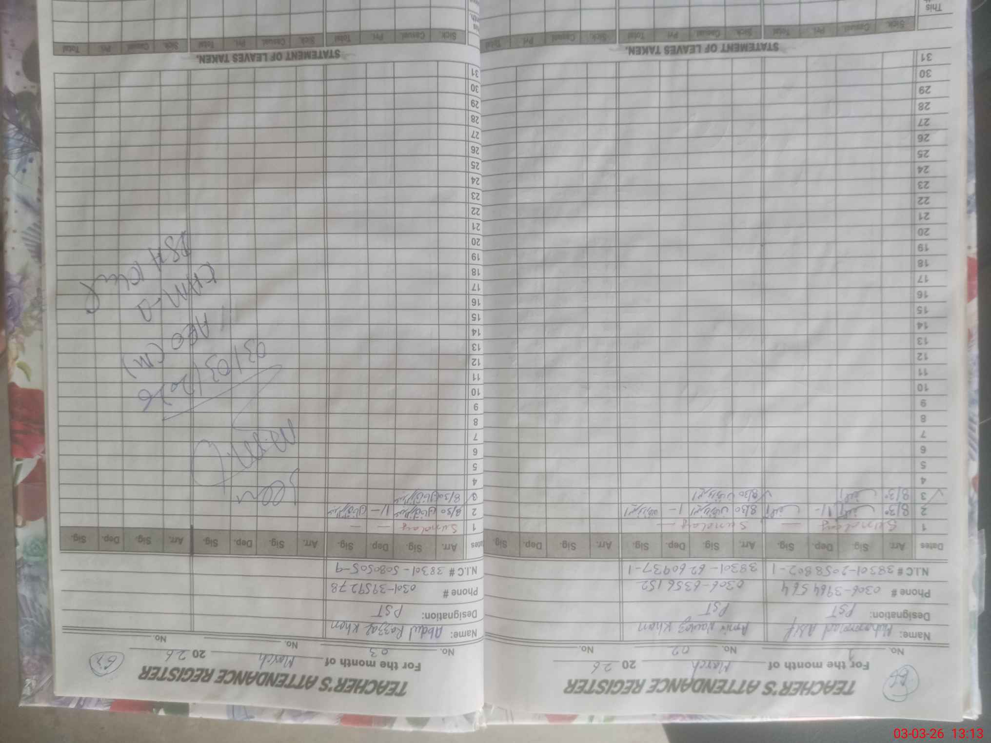 | Name: Mu**** As**** Designation: (School Headmaster's/Headmistress's) PST Phone/Cell Number: 03**** |