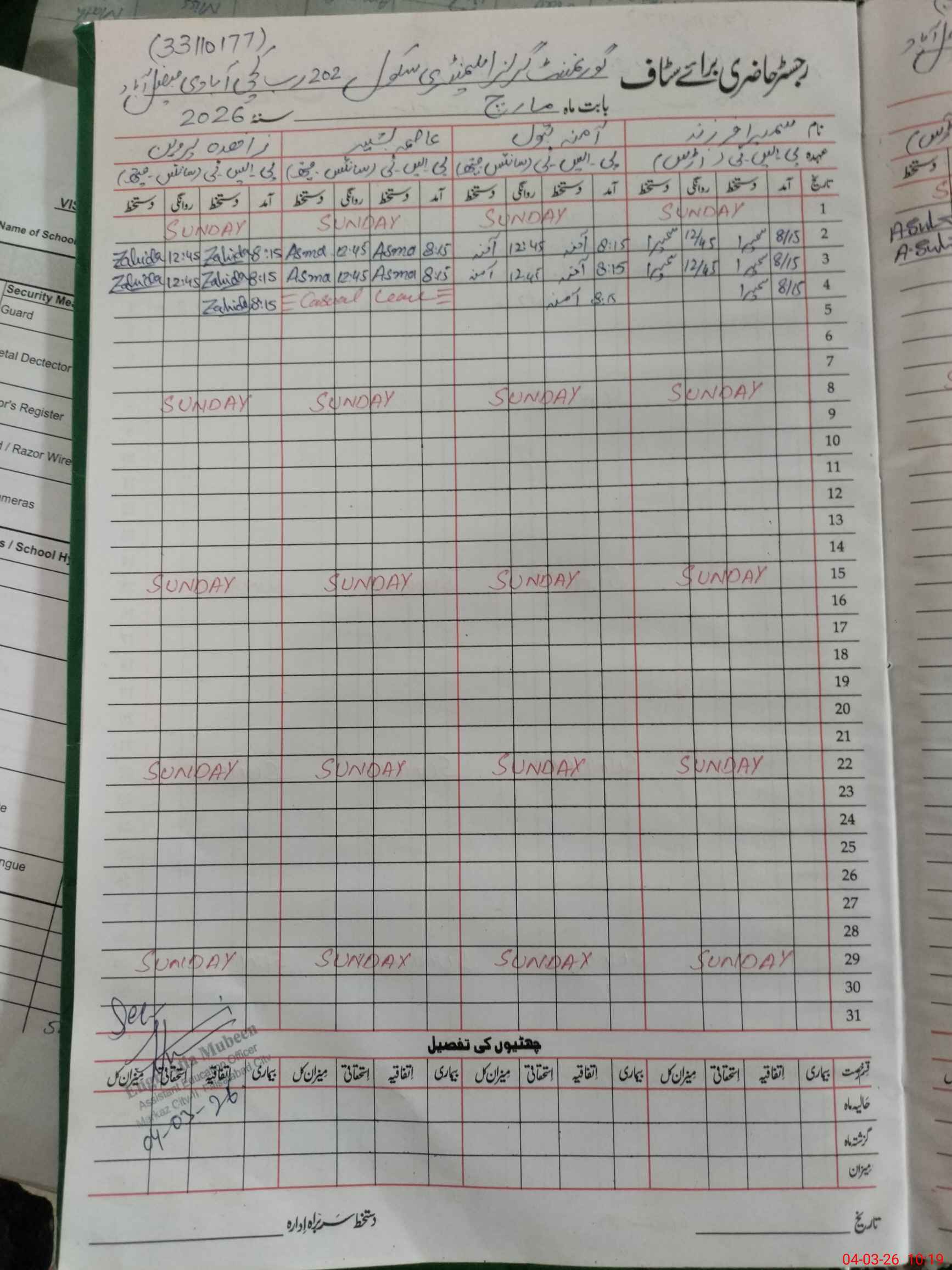 | 33**** | As**** Ba**** | PST Science/Maths | Regular | 0 | 0 | 0 | 0 | 0 | 0 | 0 | 0 | 0 | Casual |
