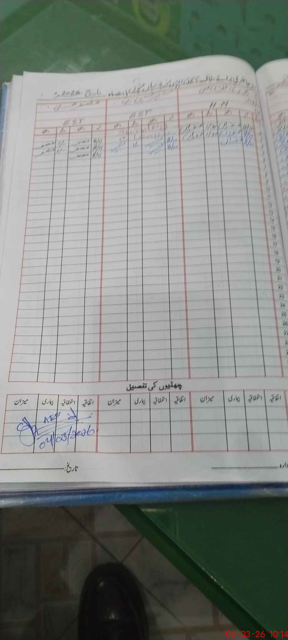 | Leave | Duty | Absent | Maternity | Medical | Ex- Pak |