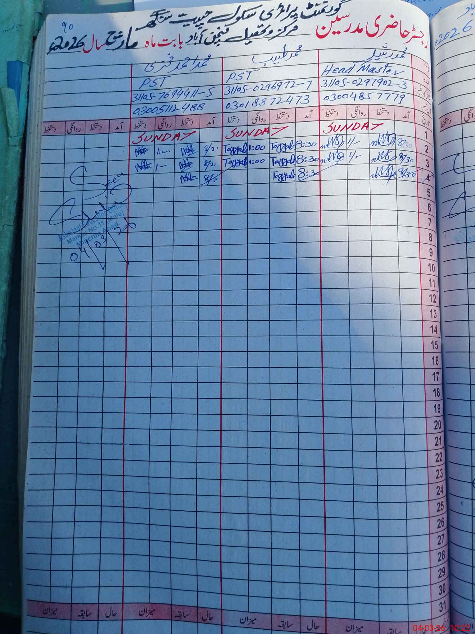 | Name: Mu**** Ra**** Designation: (School Headmaster's/Headmistress's) P S T Phone/Cell Number: 03**** |
