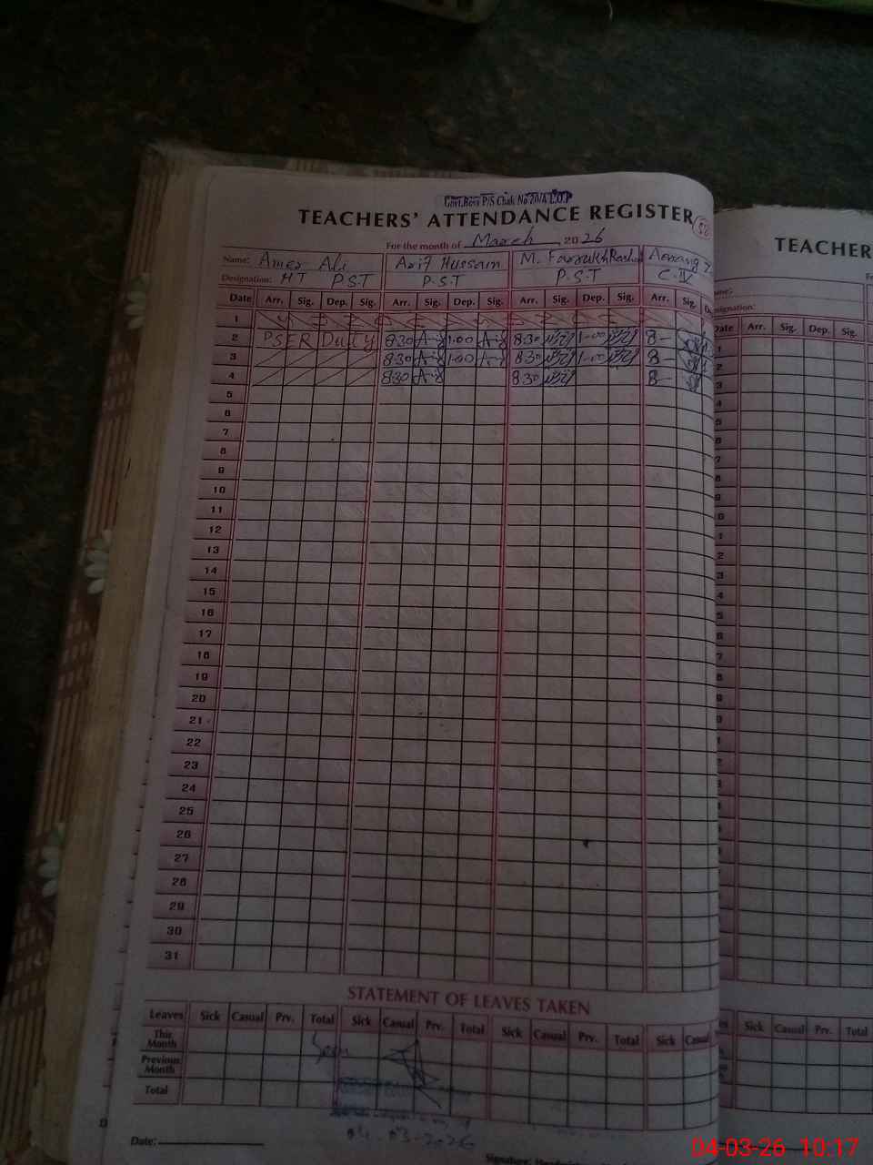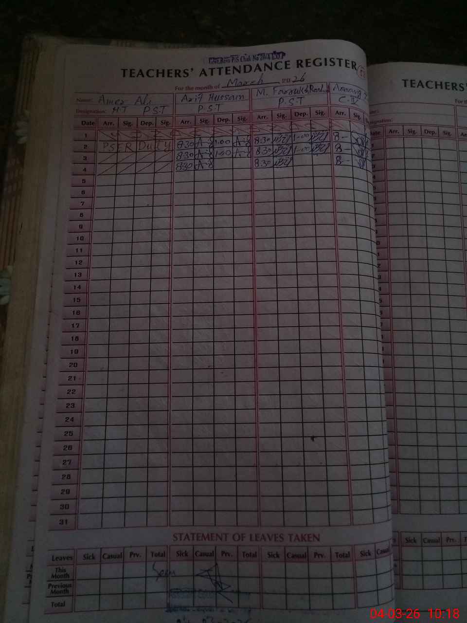 | Name: AM**** AL**** Designation: (School Headmaster's/Headmistress's) PST Phone/Cell Number: 03**** |