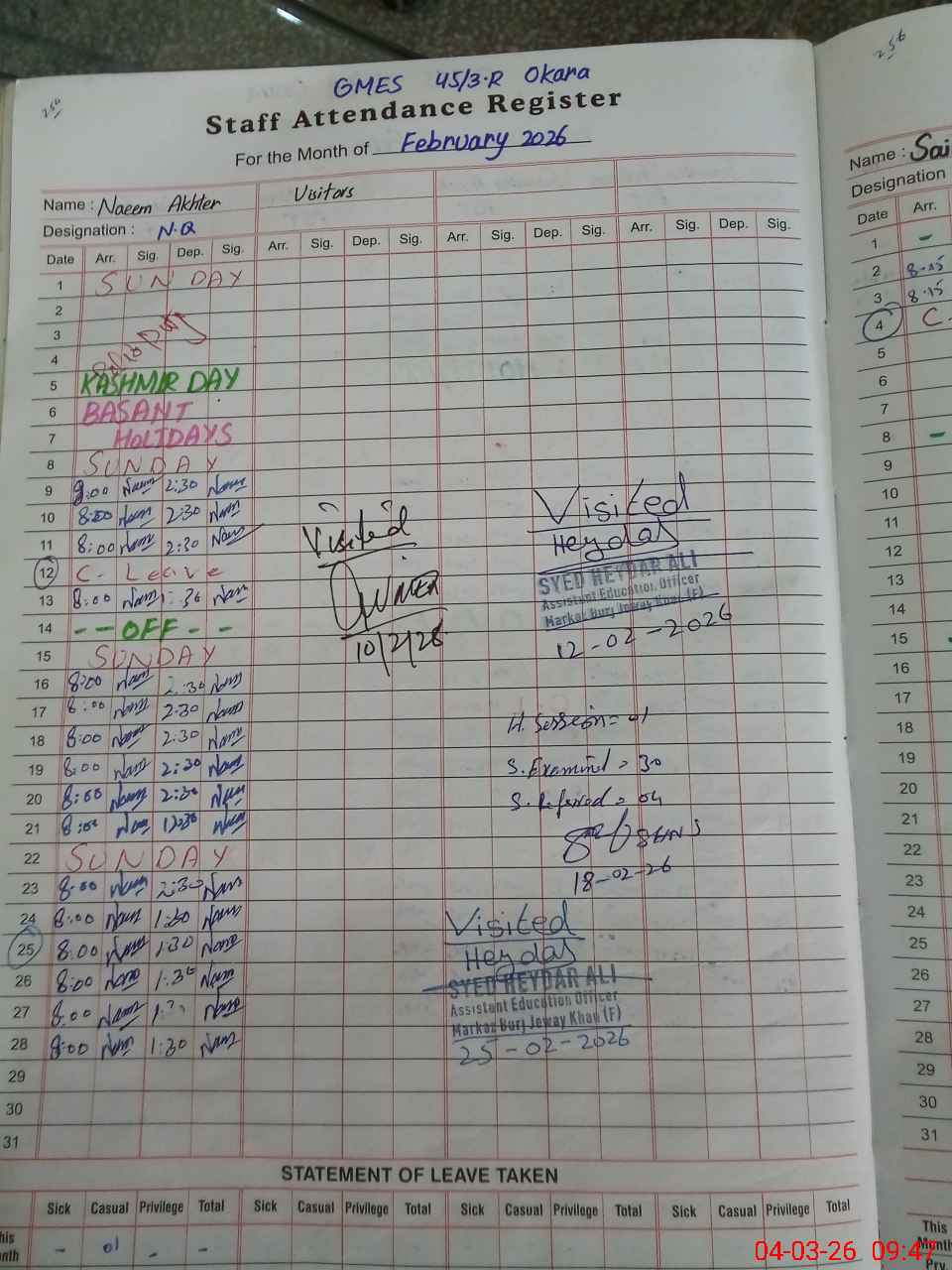 | 35**** | Sa**** Na**** | PST | Regular | 0 | 0 | 0 | 0 | 0 | 0 | 0 | 0 | 0 | Maternity |