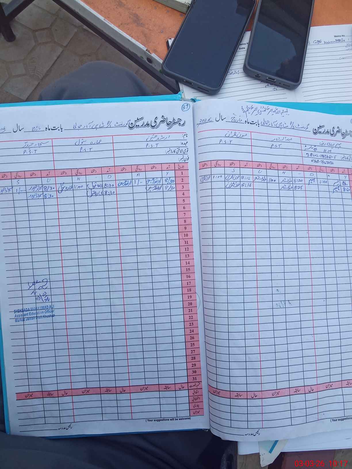 | Name: Fa**** Me**** Designation: (School Headmaster's/Headmistress's) PST Phone/Cell Number: 03**** |