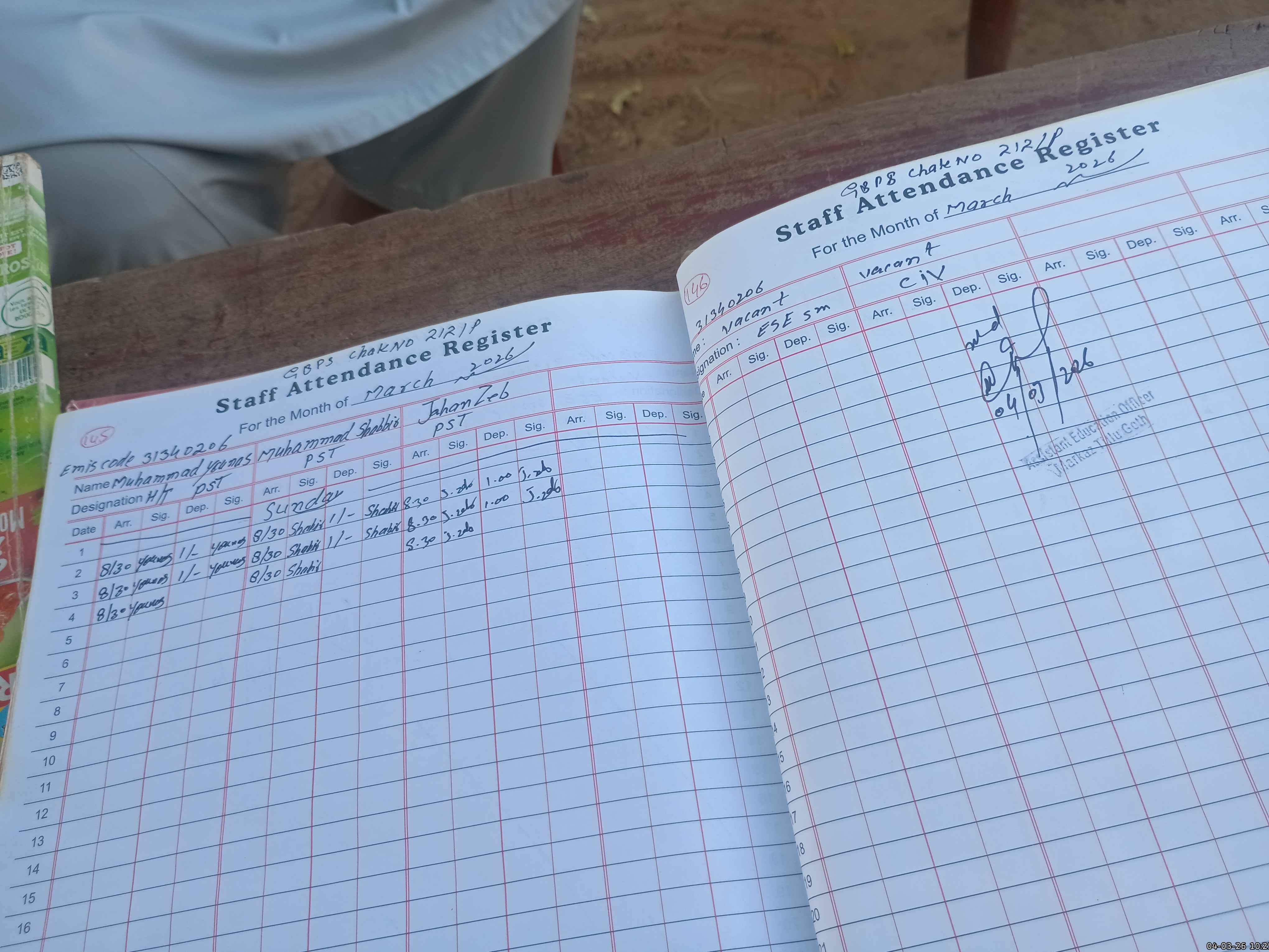 | Name: M.**** Designation: (School Headmaster's/Headmistress's) PST/PTC/JV Phone/Cell Number: 03**** |