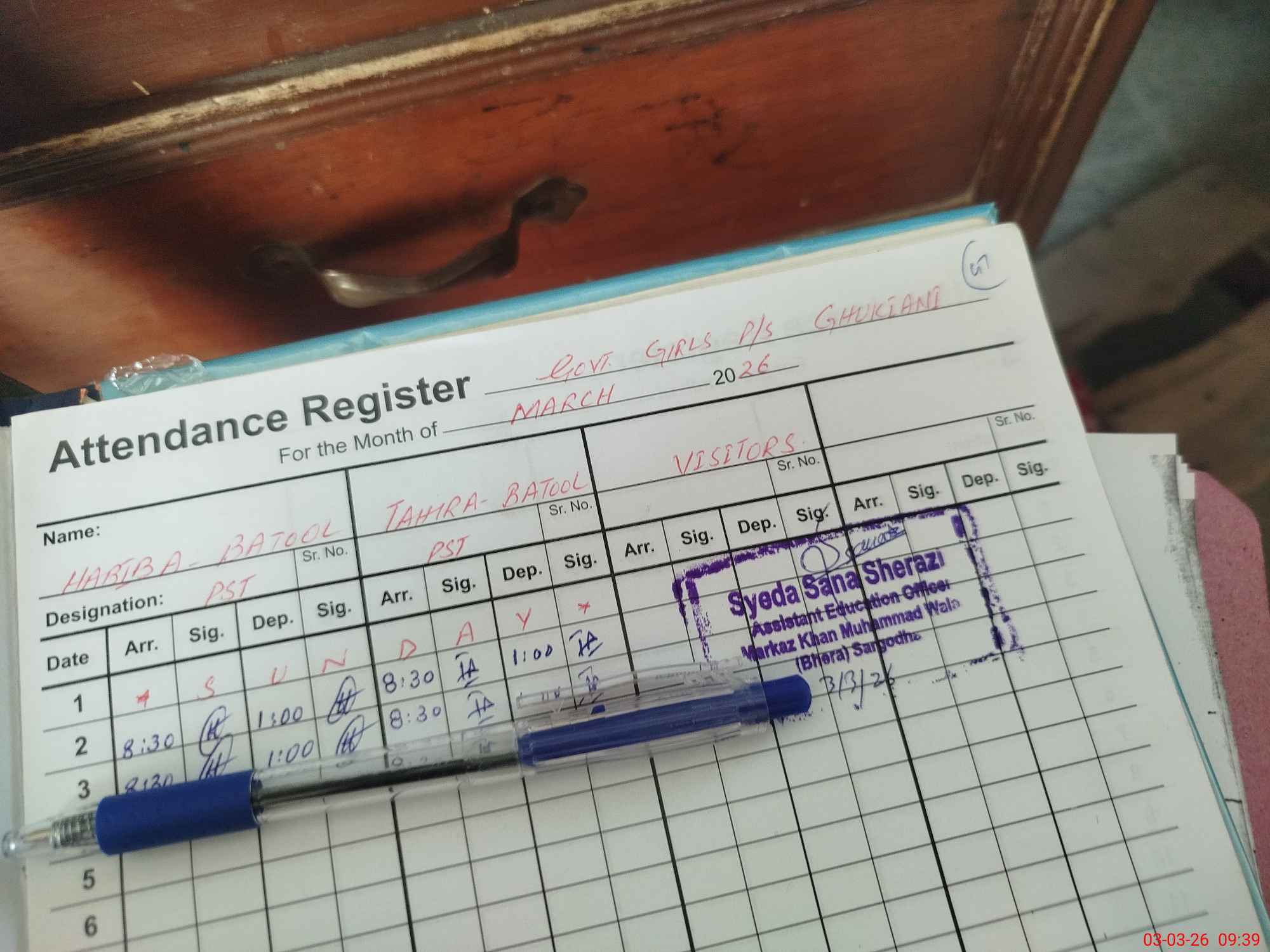 | Name: Ha**** Ba**** Designation: (School Headmaster's/Headmistress's) PST Phone/Cell Number: 03**** |