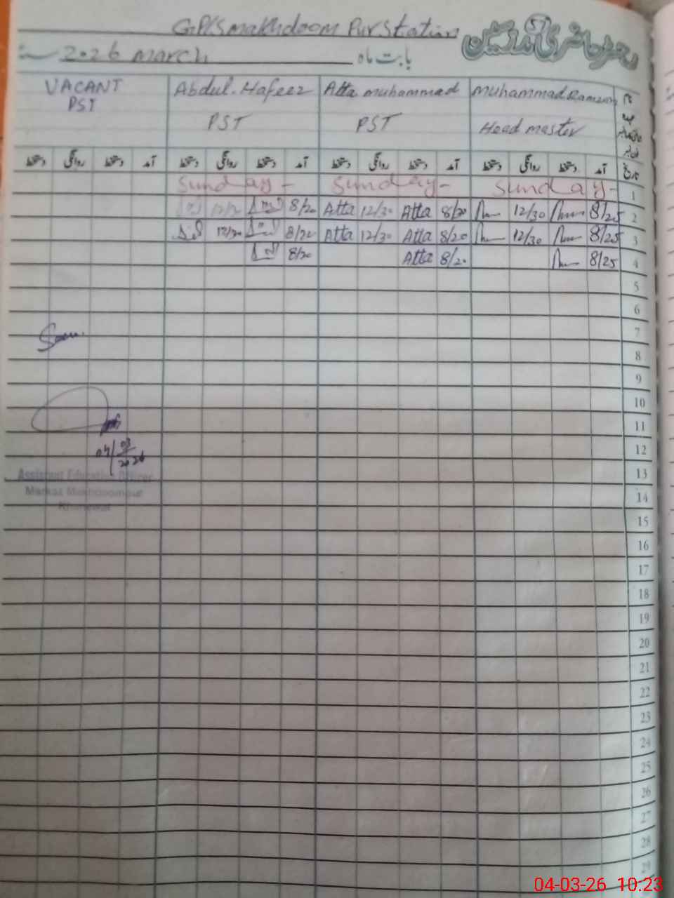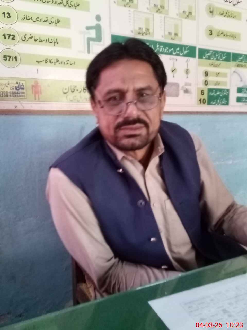 | Name: M.**** Designation: (School Headmaster's/Headmistress's) PST Phone/Cell Number: 03**** |
