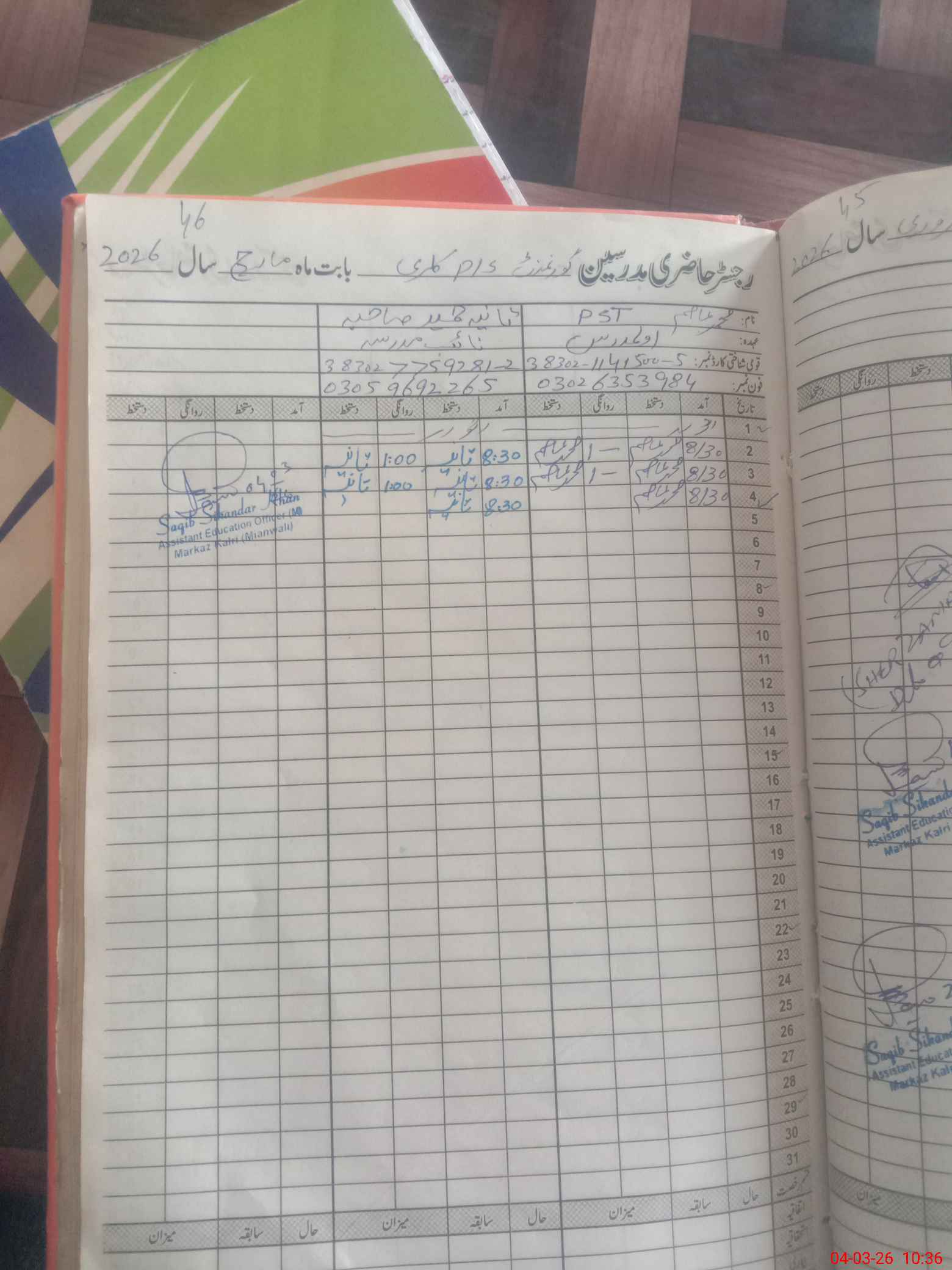 | Name: Mu**** As**** Designation: (School Headmaster's/Headmistress's) PST Phone/Cell Number: 03**** |