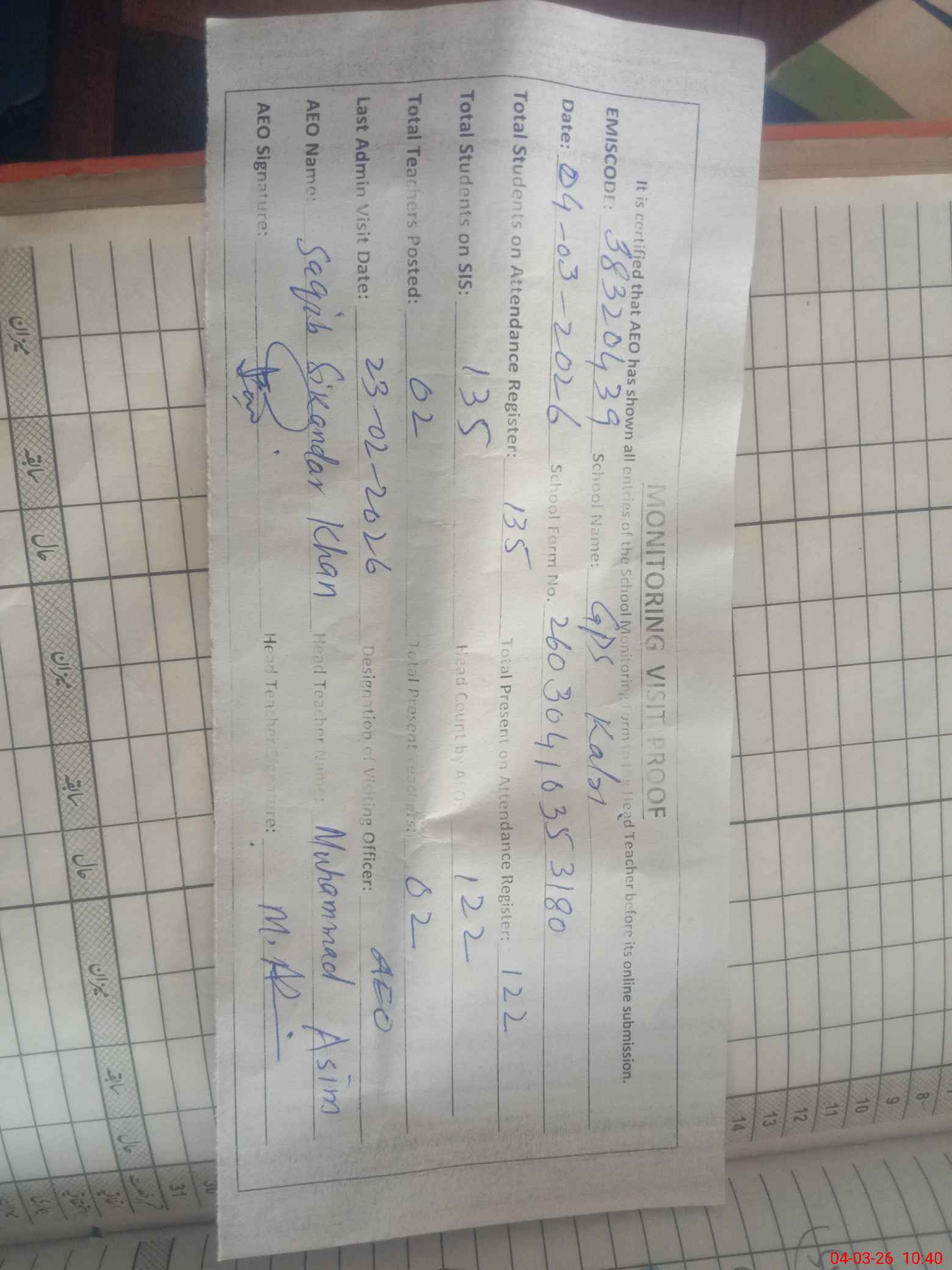 | EMIS Code: 38320439 | Name of School: GPS KALRI | |||