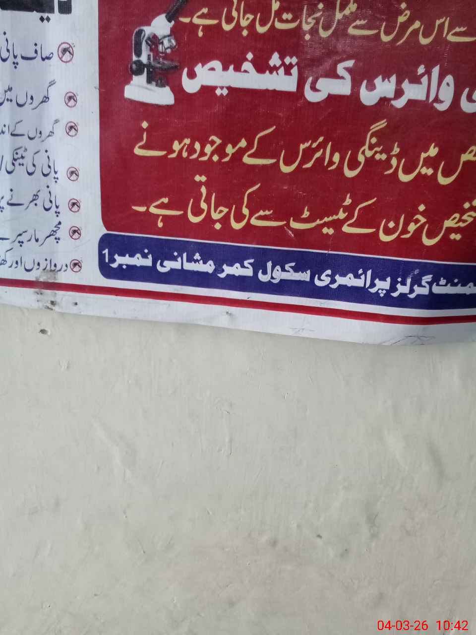 | District: MIANWALI | Tehsil: ISA KHEL | Markaz: KAMMAR MUSHANI NO.1-FEMALE | Level: Primary | |