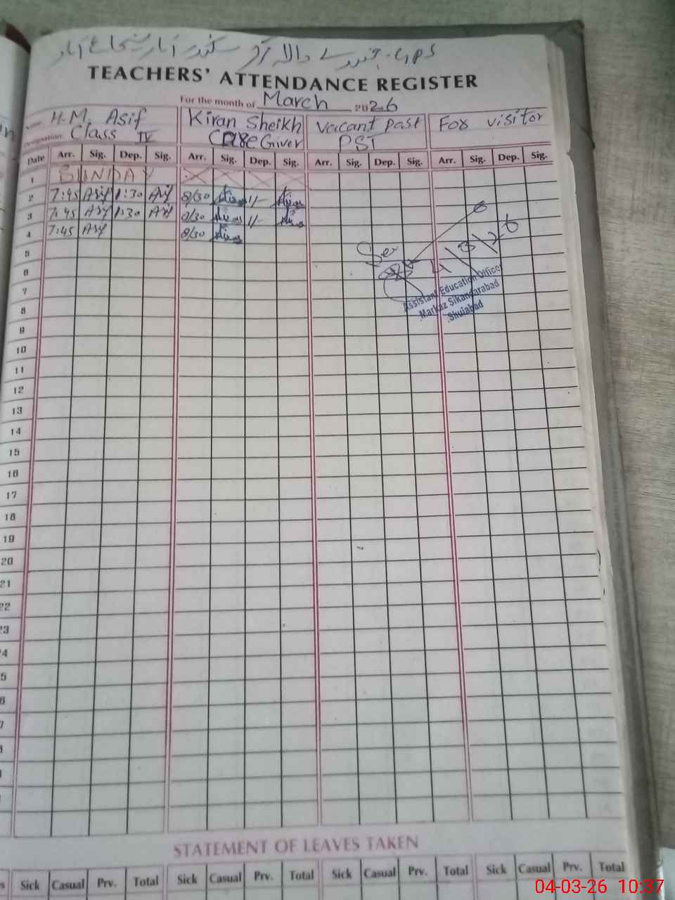 | Name: RA**** MU**** AS**** Designation: (School Headmaster's/Headmistress's) HEADMASTER Phone/Cell Number: 03**** |