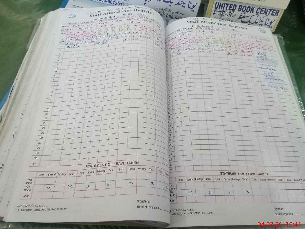 | Leave | Duty | Absent | Maternity | Medical | Ex- Pak |