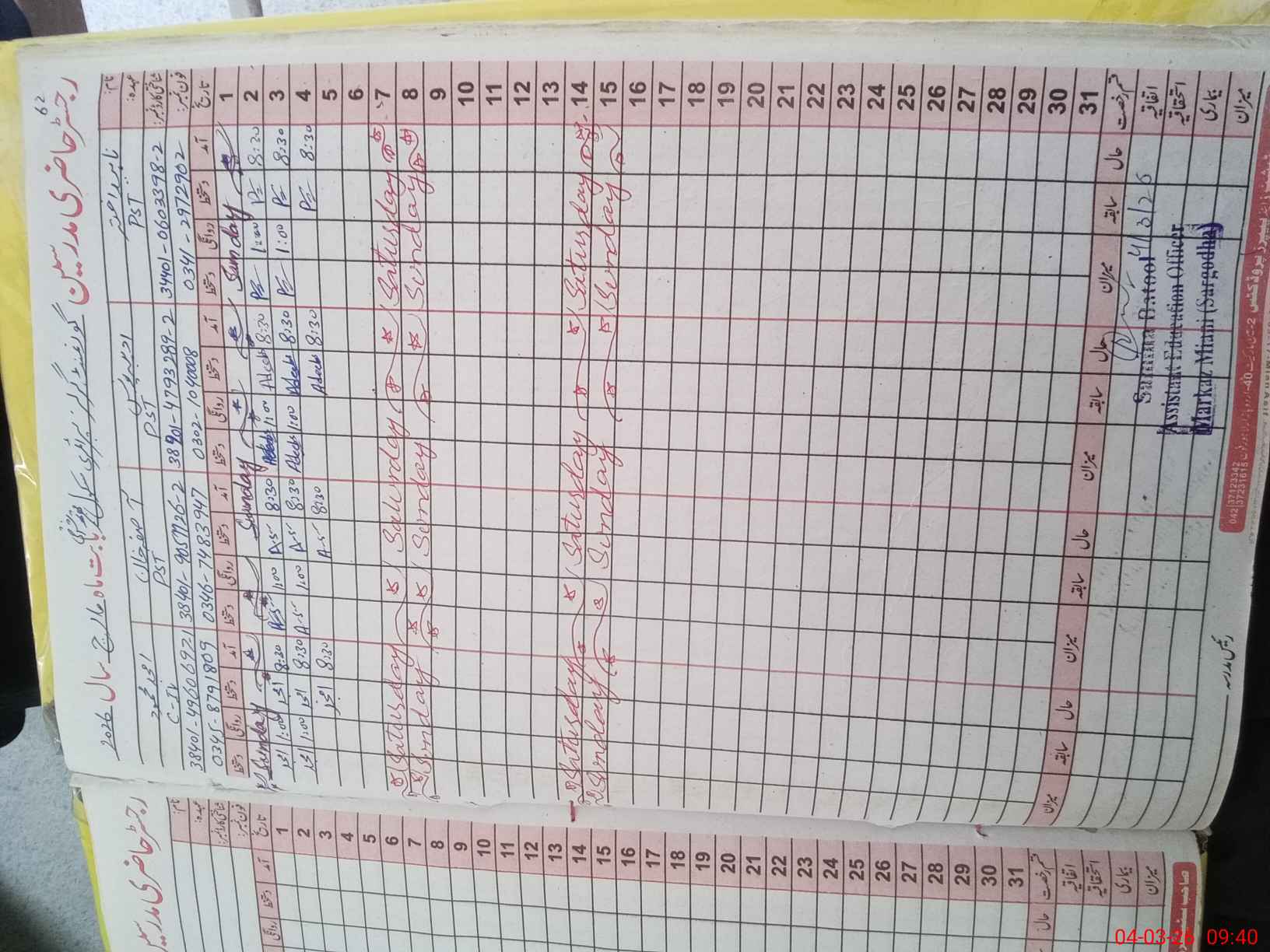 | Name: NA**** AK**** Designation: (School Headmaster's/Headmistress's) PST Phone/Cell Number: 03**** |