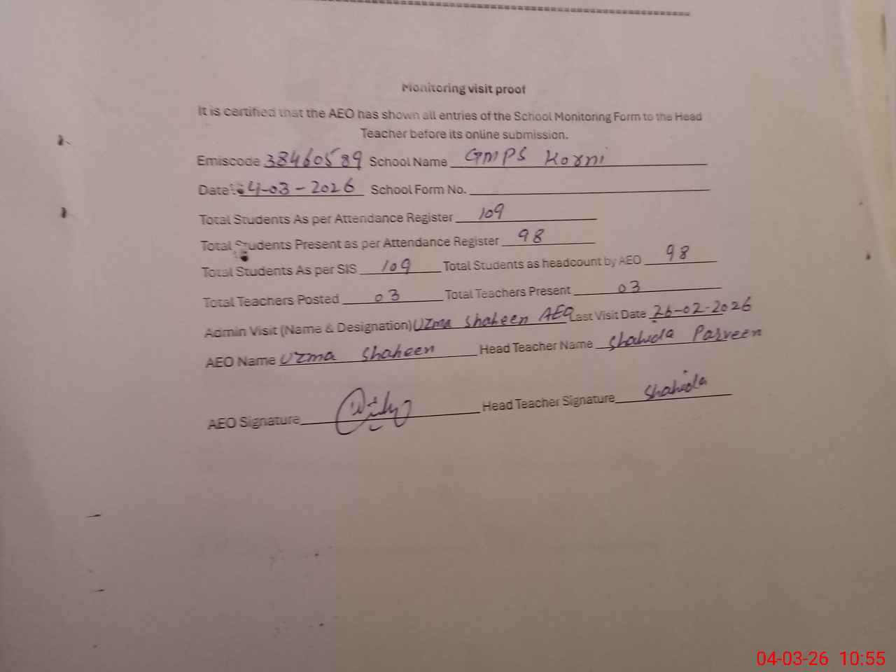 | Monitoring Date: 04-03-2026 | Start Time: 04-03-2026 10:29 AM | End Time: 04-03-2026 10:55 AM | Name of MEA: UZ**** SH**** | |