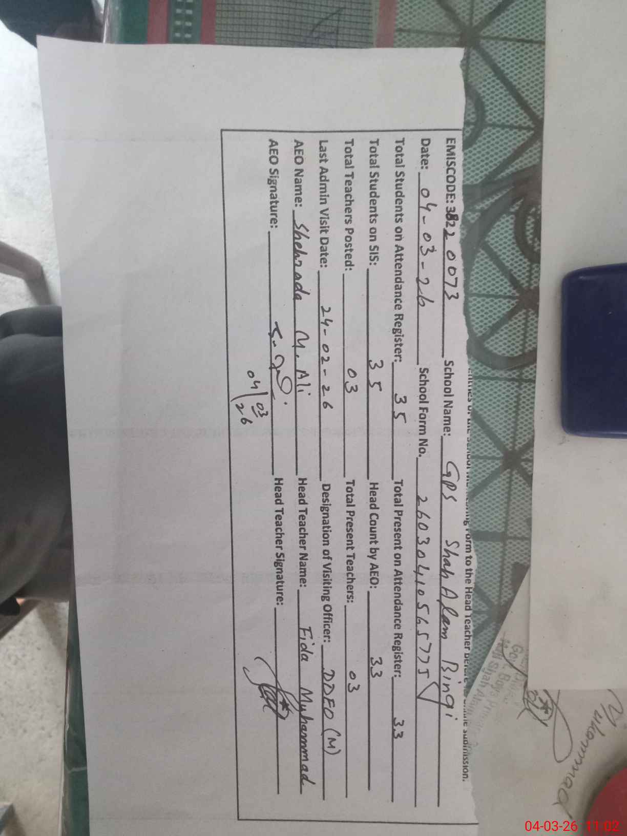 | EMIS Code: 38220073 | Name of School: GPS SHAH ALAM BINGI | |||