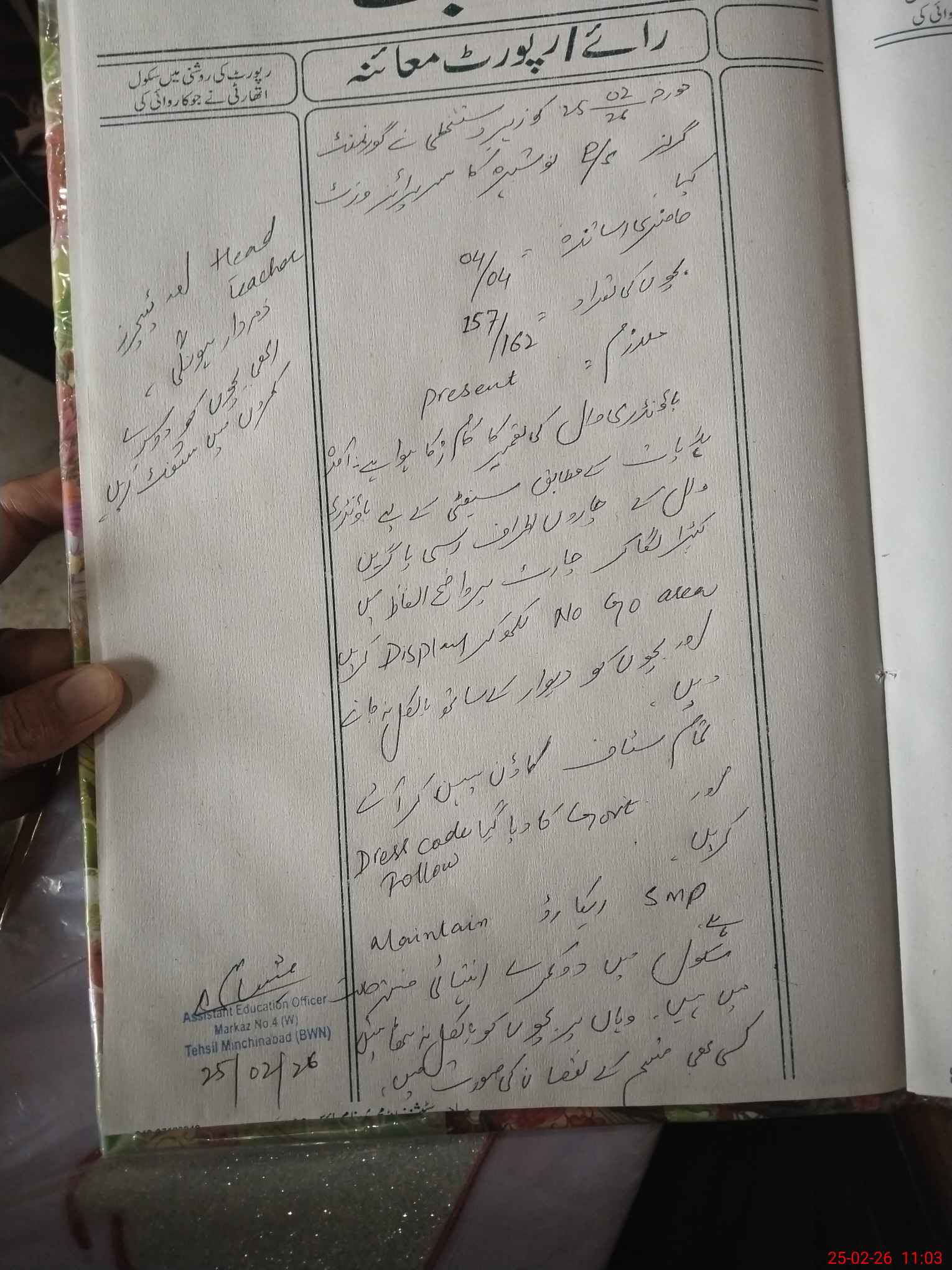 | Attendance Register | Head Teacher | MEA with School | Visit Proof |