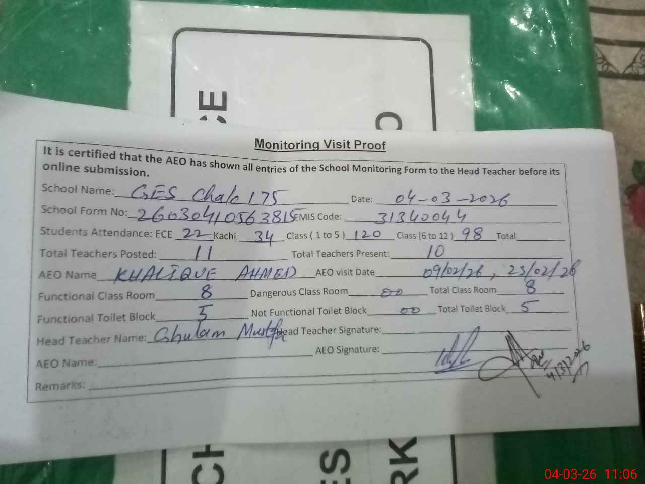 | EMIS Code: 31340044 | Name of School: GES CHAK NO 175/P | |||