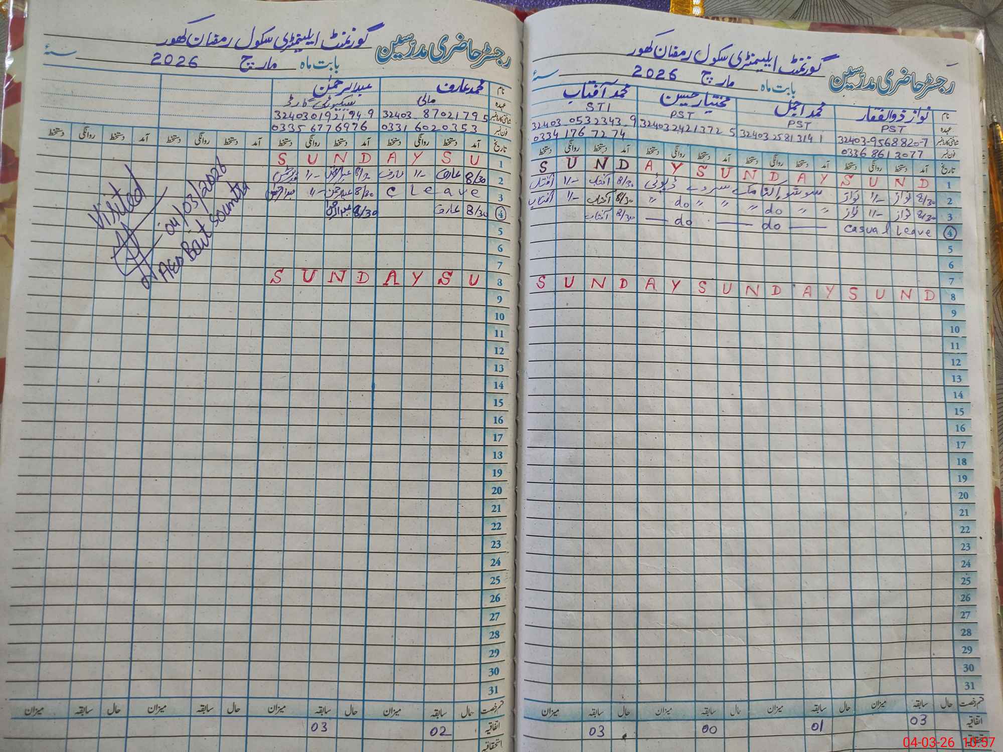 | CNIC | Full Name | Designation | R/C | Absence During Last Calender Month |