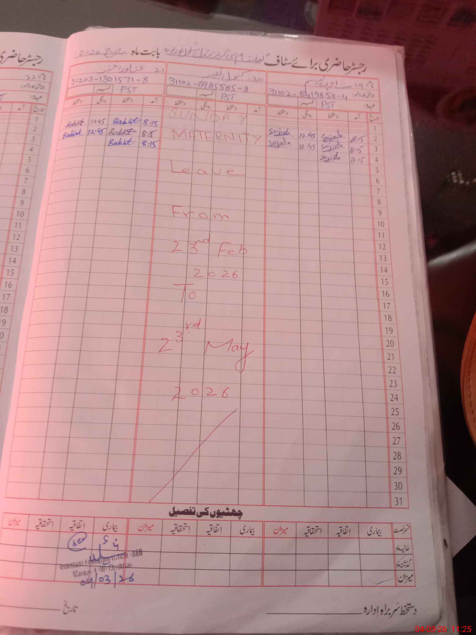 | 31**** | Su**** As**** | PST Science/Maths | Regular | 0 | 0 | 0 | 0 | 0 | 0 | 0 | 0 | 0 | Maternity |