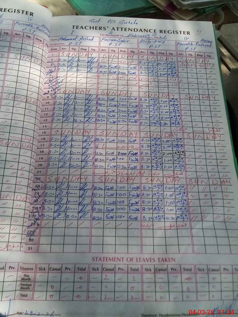 | Leave | Duty | Absent | Maternity | Medical | Ex- Pak |