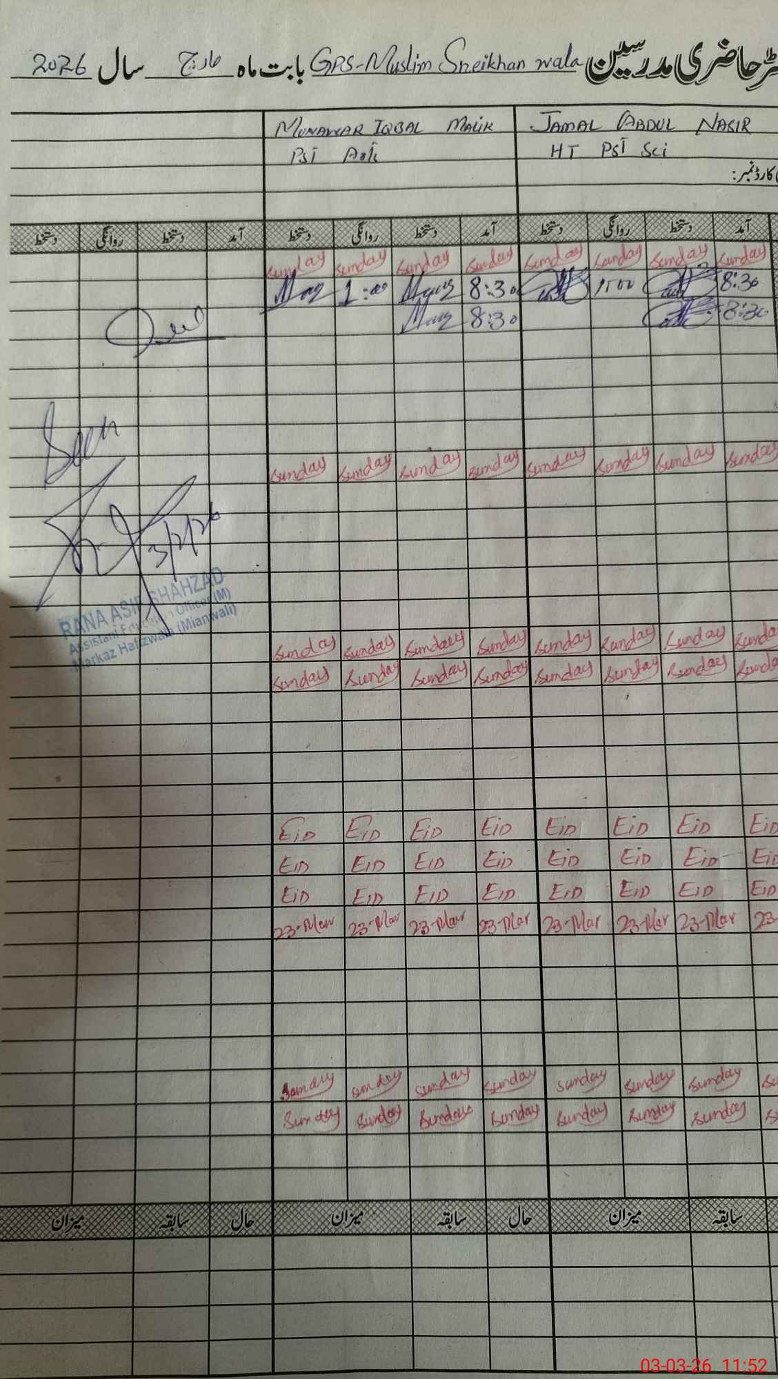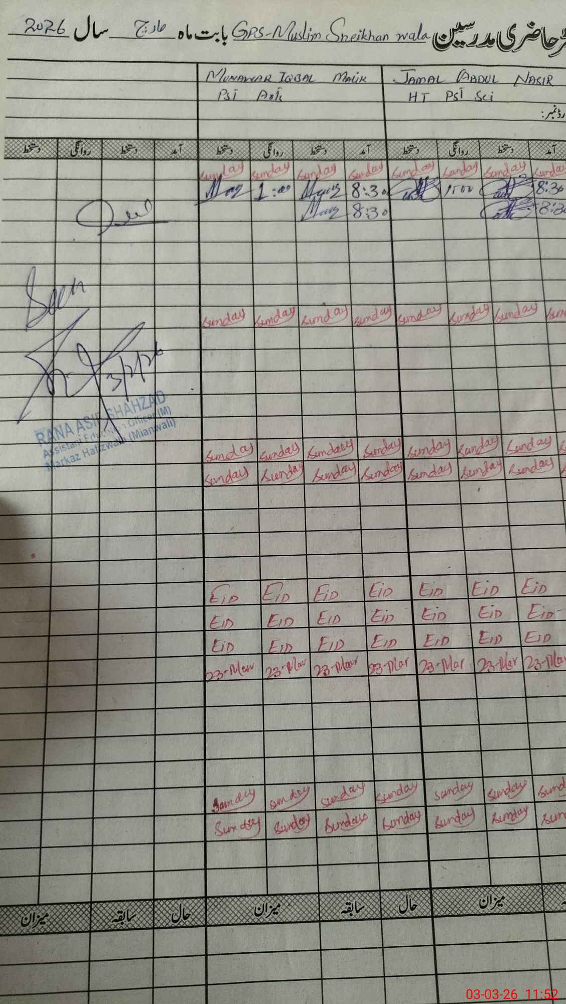 | Monitoring Date: 03-03-2026 | Start Time: 03-03-2026 11:31 AM | End Time: 03-03-2026 11:53 AM | Name of MEA: Ra**** As**** Sh**** | |