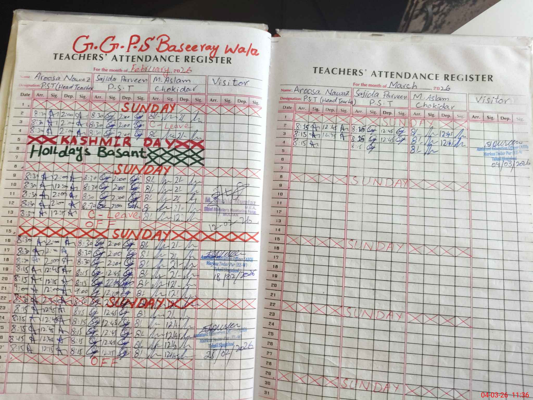 | Attendance Register | Head Teacher | MEA with School | Visit Proof |
