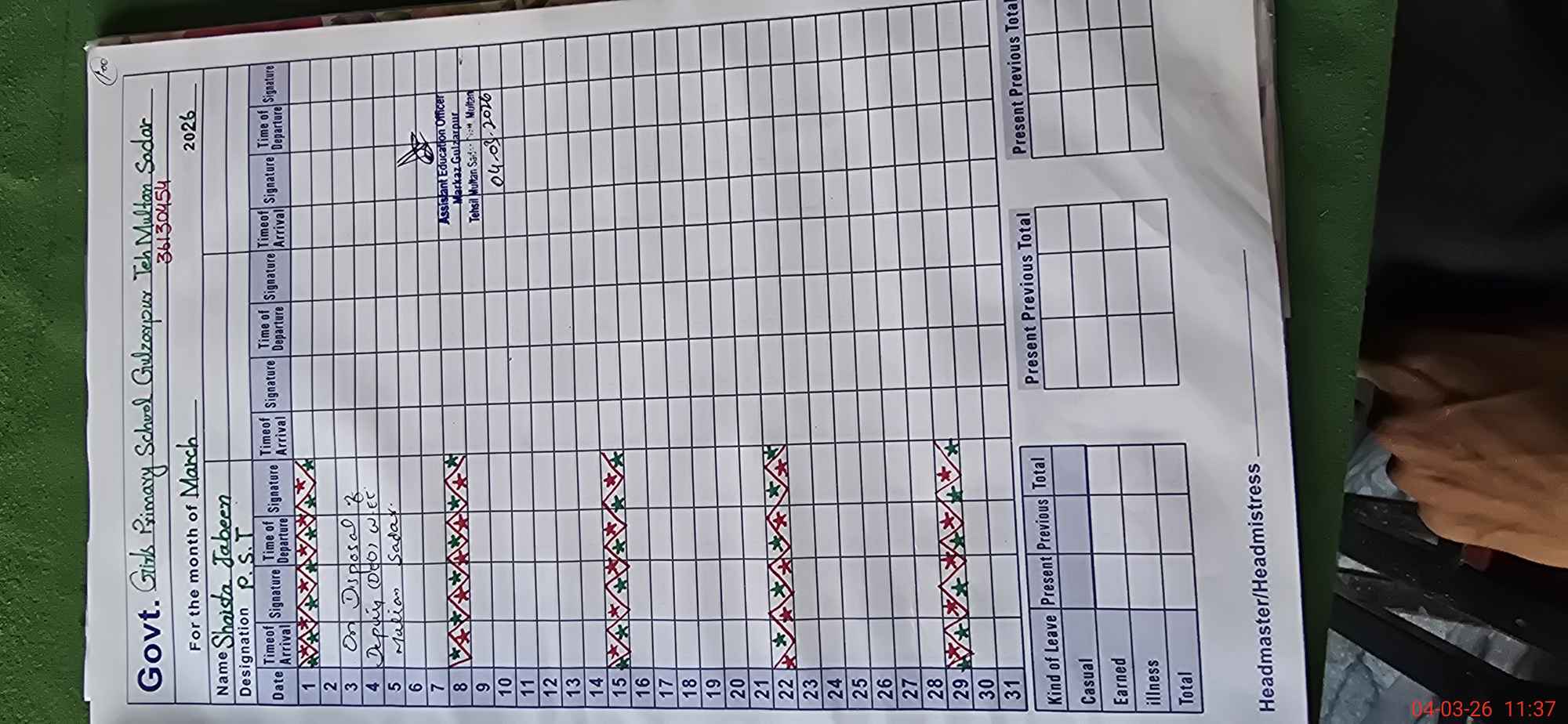| District: MULTAN | Tehsil: MULTAN SADAR | Markaz: GULZAR PUR - FEMALE | Level: Primary | |