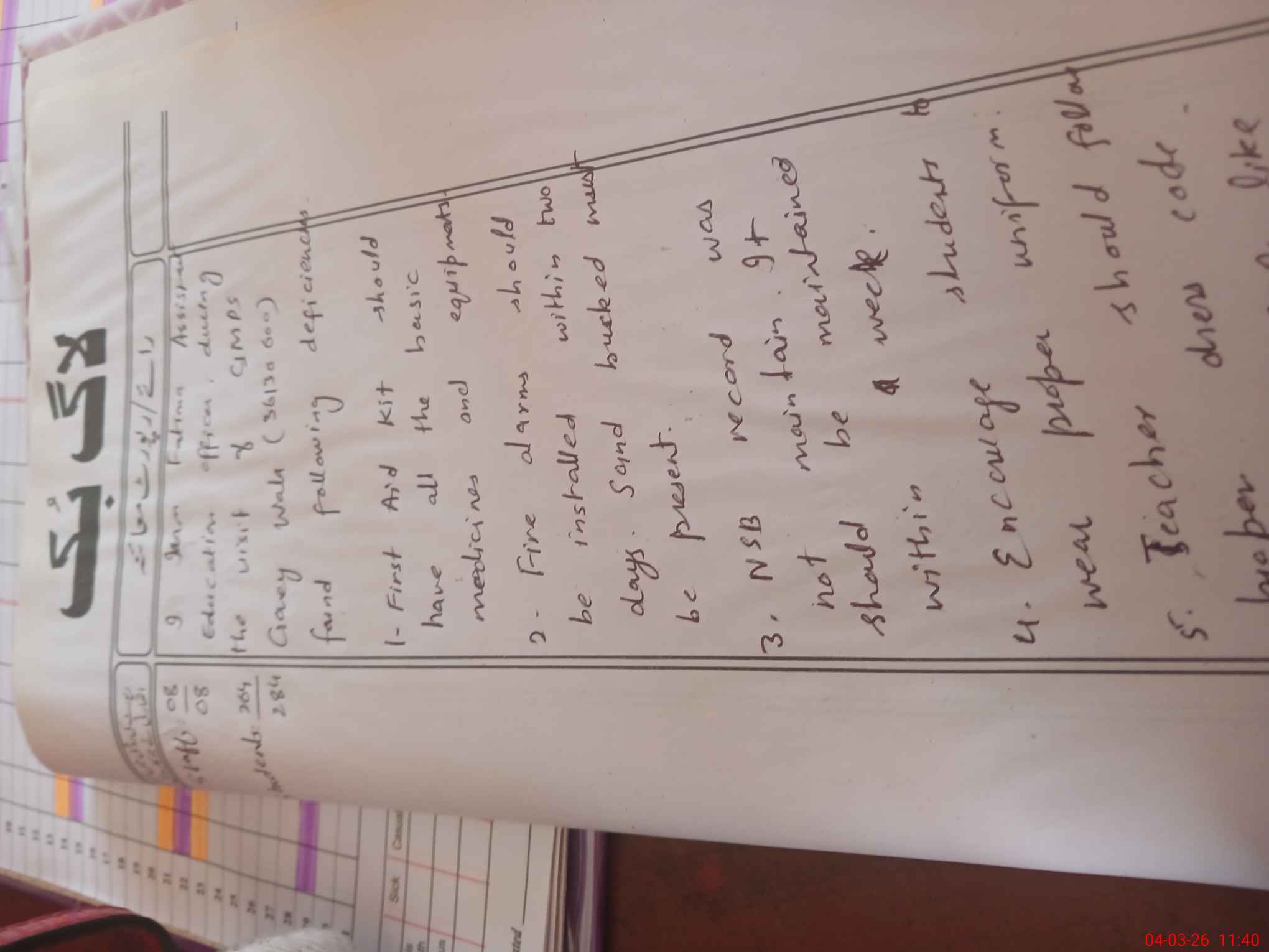 | Attendance Register | Head Teacher | MEA with School | Visit Proof |