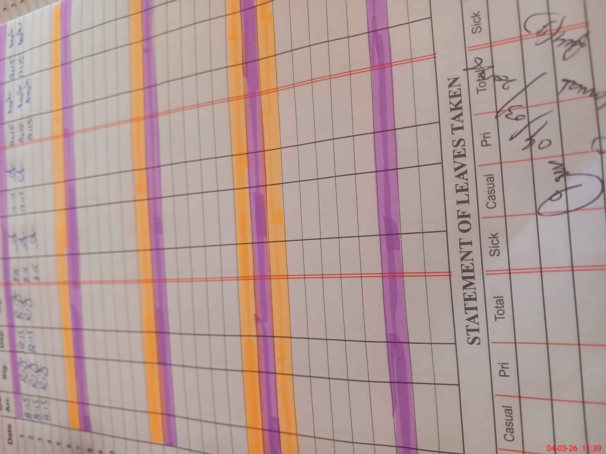 | Leave | Duty | Absent | Maternity | Medical | Ex- Pak |