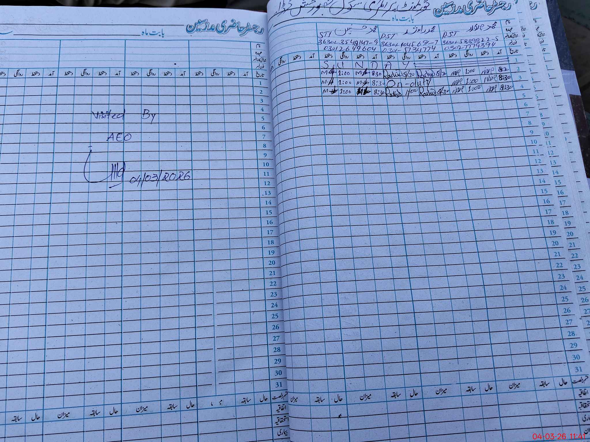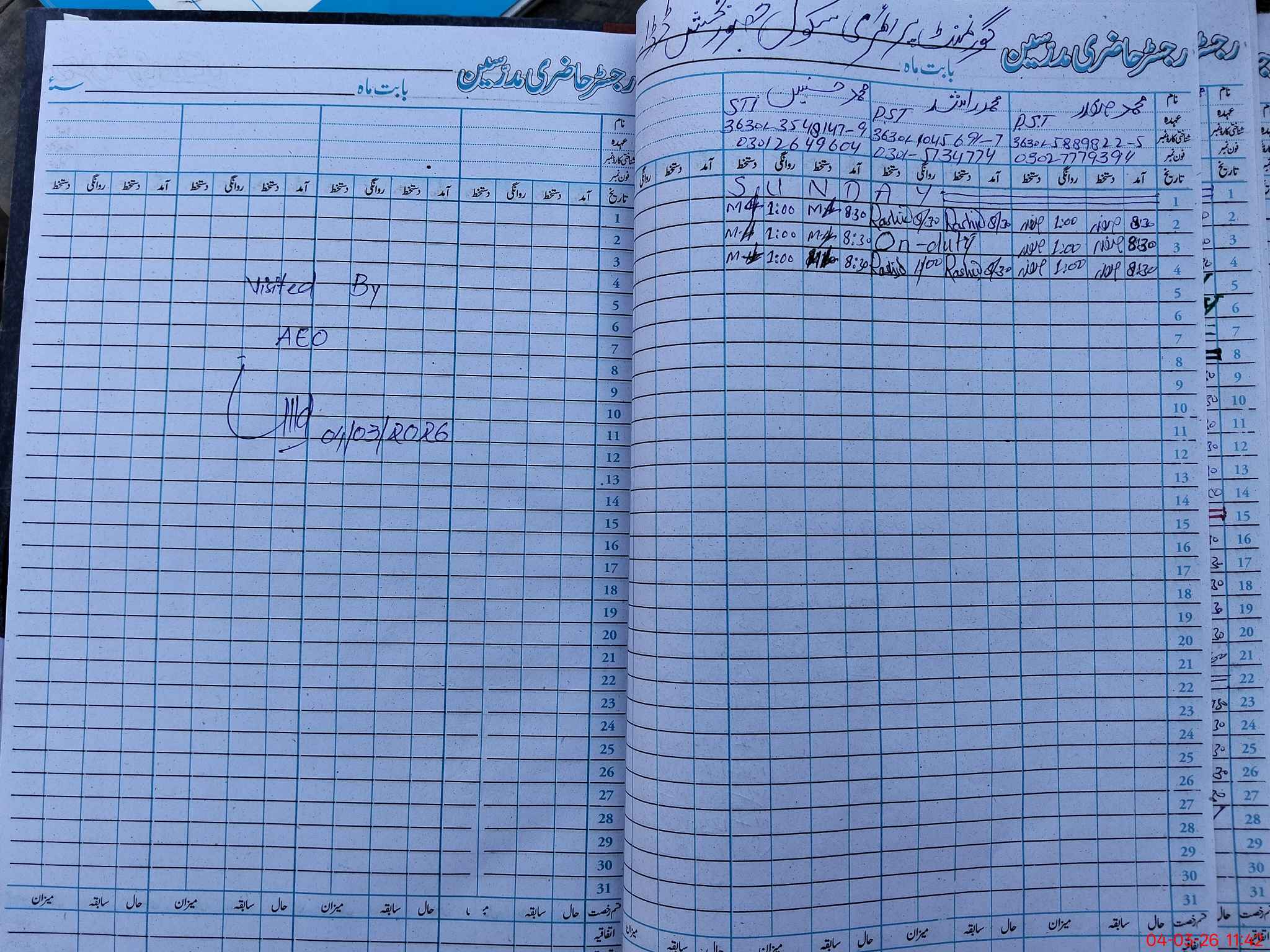 | Name: Mu**** Sa**** Designation: (School Headmaster's/Headmistress's) PST Phone/Cell Number: 03**** |