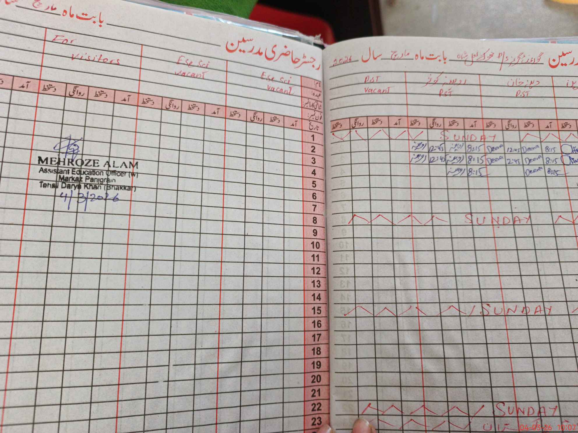 | CNIC | Full Name | Designation | R/C | Absence During Last Calender Month |
