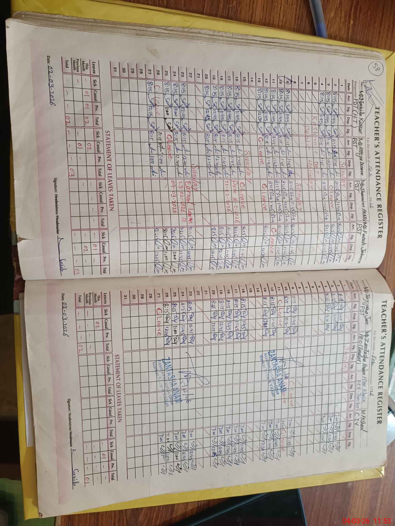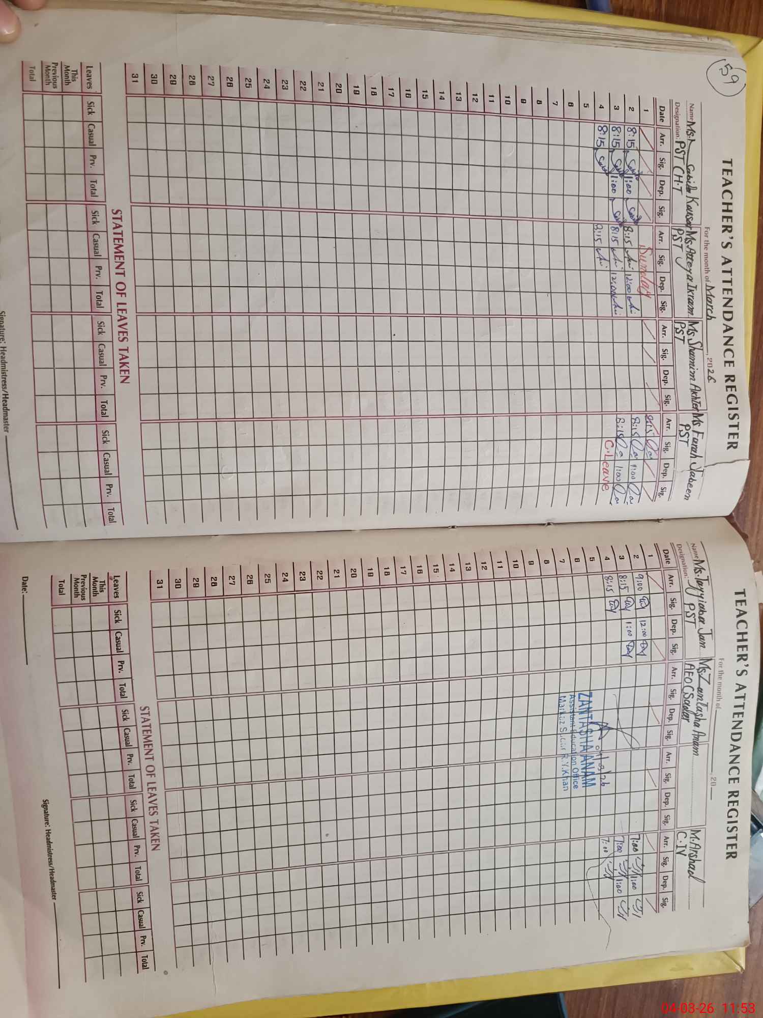 | Leave | Duty | Absent | Maternity | Medical | Ex- Pak |