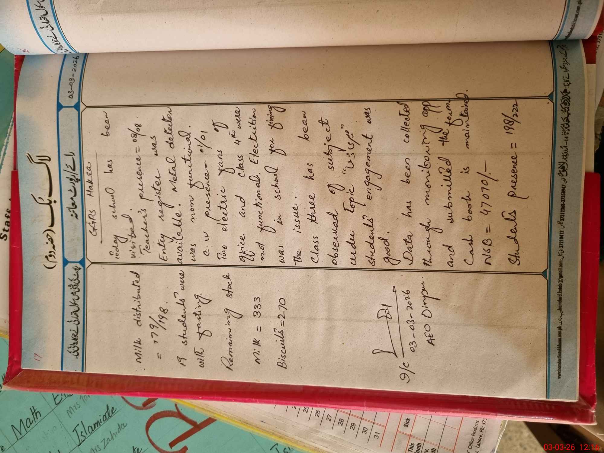 | Textbook Sets Received in the School | 66 | 68 | 28 | 29 | 23 | 24 | |||||