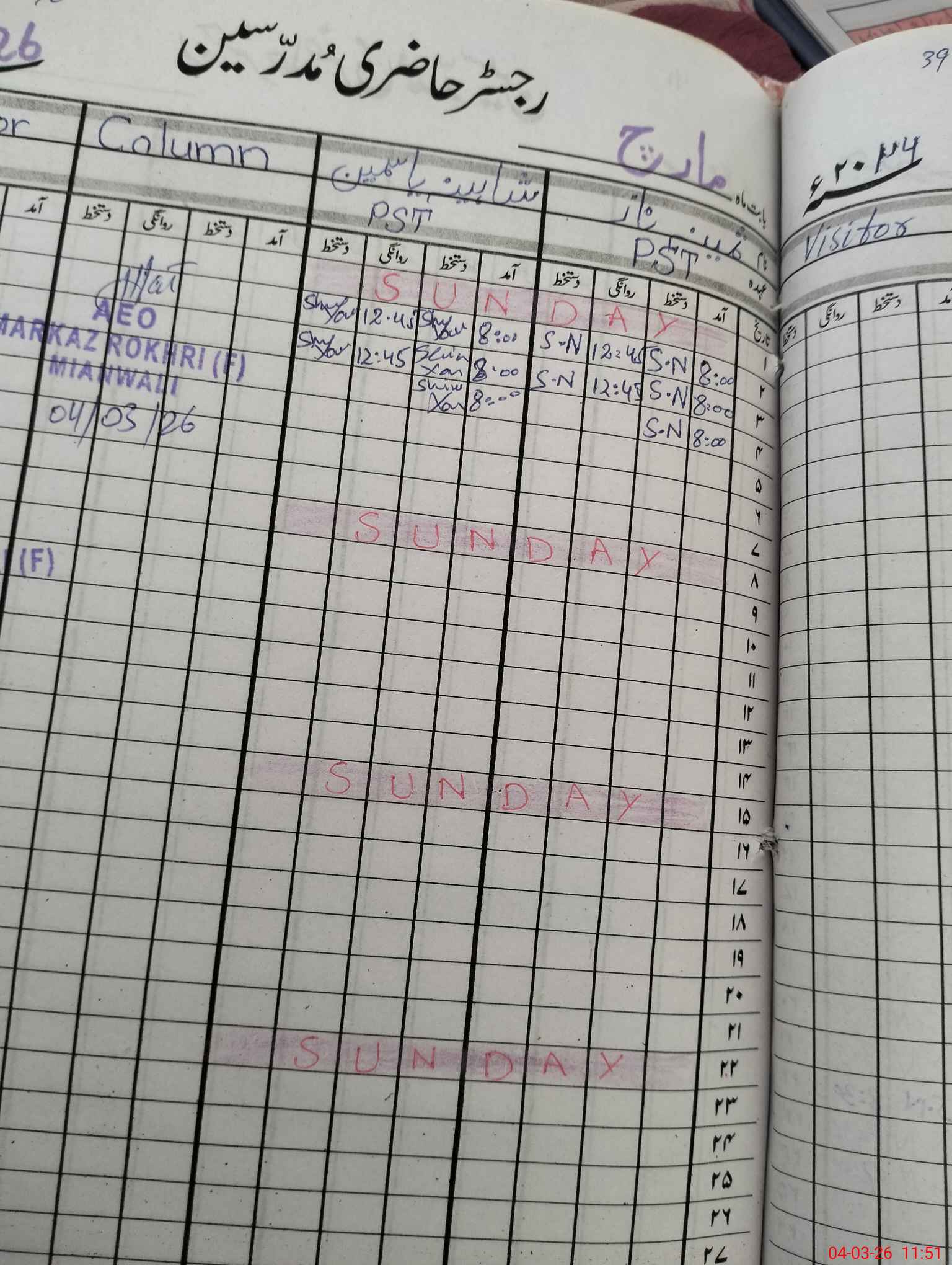 | District: MIANWALI | Tehsil: MIANWALI | Markaz: ROKHRI-FEMALE | Level: Primary | |