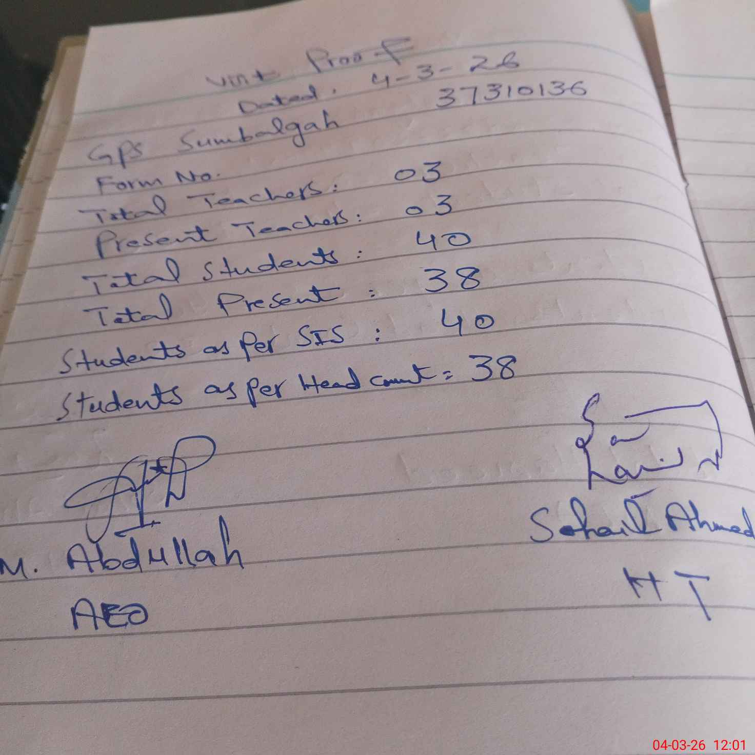 | EMIS Code: 37310136 | Name of School: GPS SUMBAL GAH | |||
